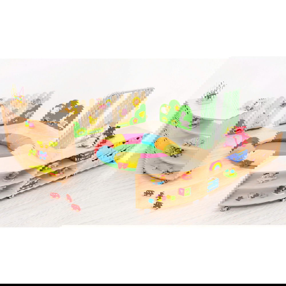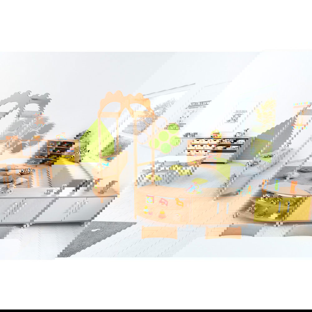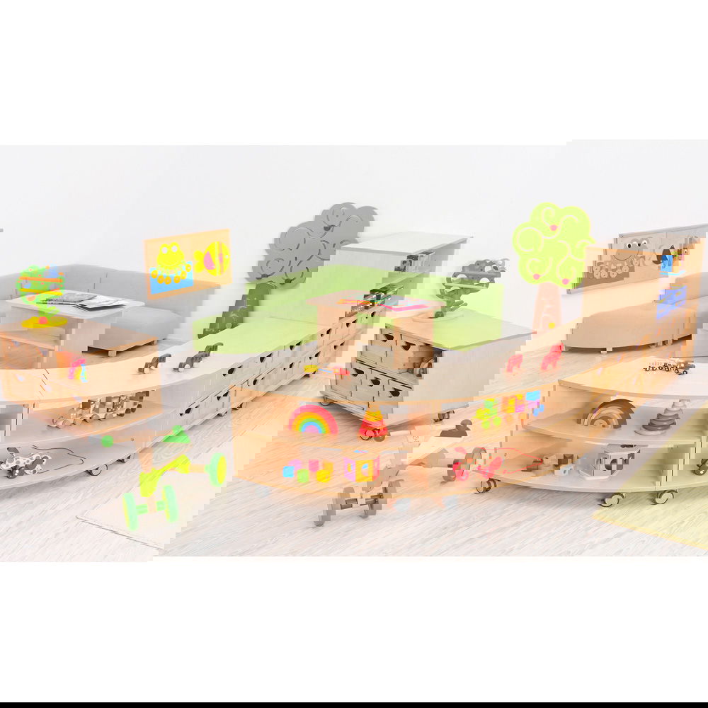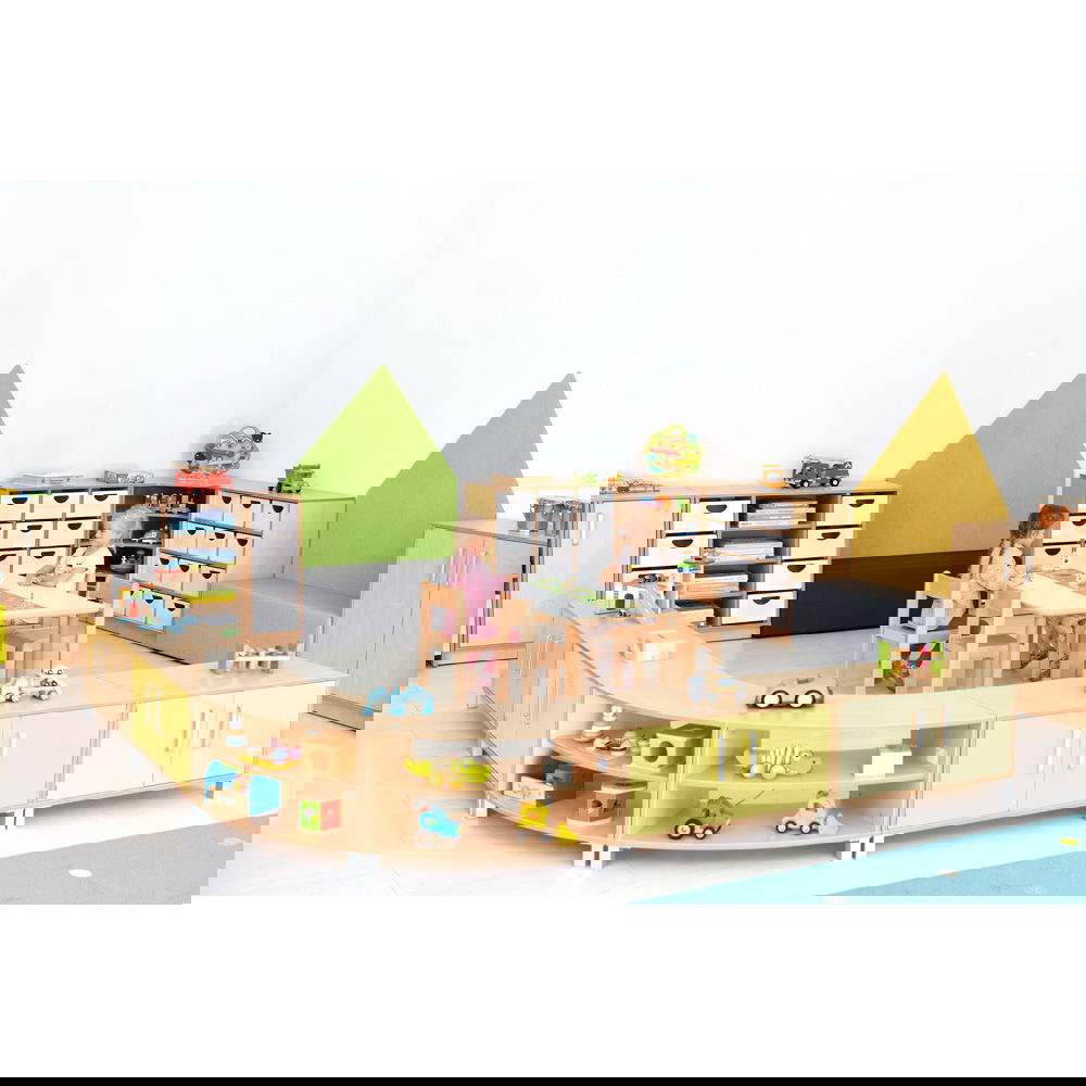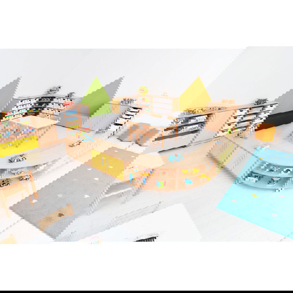 Das Prinzip ist so einfach wie genial: Ein Schrank entspricht einem Achtelkreis. Kombinieren Sie mehrere Elemente, um Wellenformen oder Kreise zu bilden. Dies fördert nicht nur die Kreativität bei der Einrichtung, sondern ermöglicht auch eine schnelle Anpassung des Raumes an neue Spielsituationen. - Wahlweise mobil oder standfest