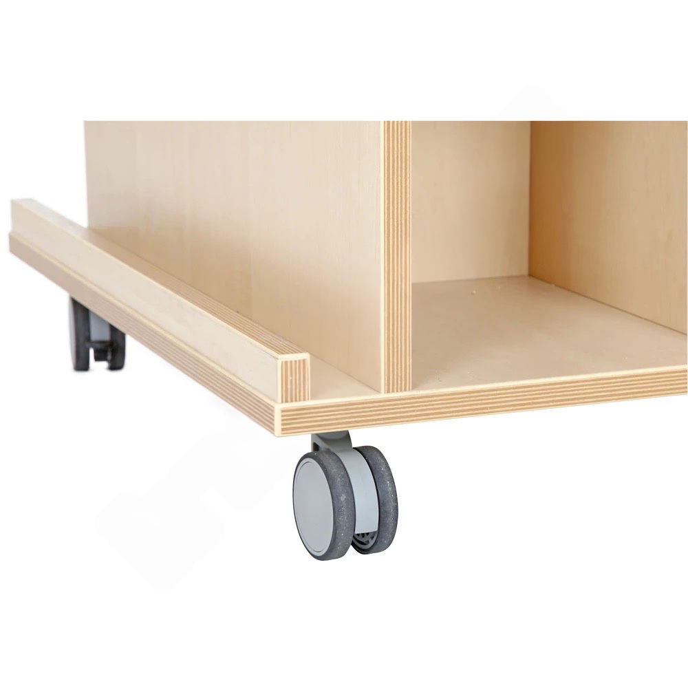 Bewegen Sie Bücher, Spiele und Materialien mühelos von einem Raum zum anderen. Die vier hochwertigen Rollen machen das Regal extrem mobil. Sobald der richtige Platz gefunden ist, sorgen die integrierten Feststellbremsen an allen vier Rollen für einen absolut sicheren und stabilen Stand. So bleibt alles an seinem Platz, auch wenn es im Raum mal turbulenter zugeht. - Geniales 4-Seiten-Stauraumkonzept
