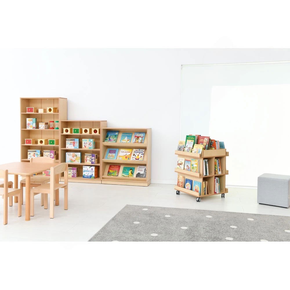 In modernen Lern- und Betreuungsumgebungen ist Flexibilität der Schlüssel zu einer dynamischen und anregenden Atmosphäre. Das Flexi Bücherregal auf Rollen ist genau für diese Anforderung konzipiert: Es ist mehr als nur ein Aufbewahrungsmöbel – es ist eine mobile Bibliothek, ein Raumteiler und ein Präsentationswagen in einem. Dank seines cleveren Designs und der vier feststellbaren Rollen lässt es sich mühelos dorthin bewegen, wo es gerade gebraucht wird. Ob als zentraler Anlaufpunkt in der Leseecke, zur strukturierten Aufbewahrung von Materialien im Gruppenraum oder als flexible Trennwand – dieses Regal passt sich den Bedürfnissen von Kindern und Pädagogen perfekt an und bringt Ordnung und Übersicht in den Alltag.