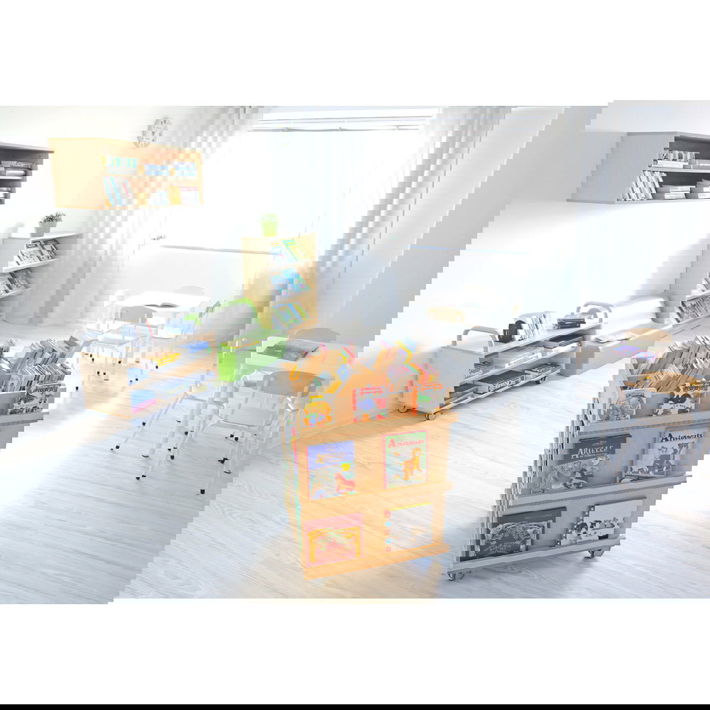 In modernen Lern- und Betreuungsumgebungen ist Flexibilität der Schlüssel zu einer dynamischen und anregenden Atmosphäre. Das Flexi Bücherregal auf Rollen ist genau für diese Anforderung konzipiert: Es ist mehr als nur ein Aufbewahrungsmöbel – es ist eine mobile Bibliothek, ein Raumteiler und ein Präsentationswagen in einem. Dank seines cleveren Designs und der vier feststellbaren Rollen lässt es sich mühelos dorthin bewegen, wo es gerade gebraucht wird. Ob als zentraler Anlaufpunkt in der Leseecke, zur strukturierten Aufbewahrung von Materialien im Gruppenraum oder als flexible Trennwand – dieses Regal passt sich den Bedürfnissen von Kindern und Pädagogen perfekt an und bringt Ordnung und Übersicht in den Alltag.