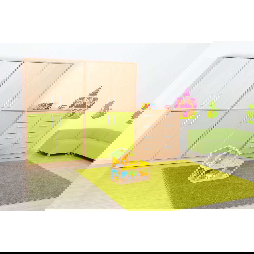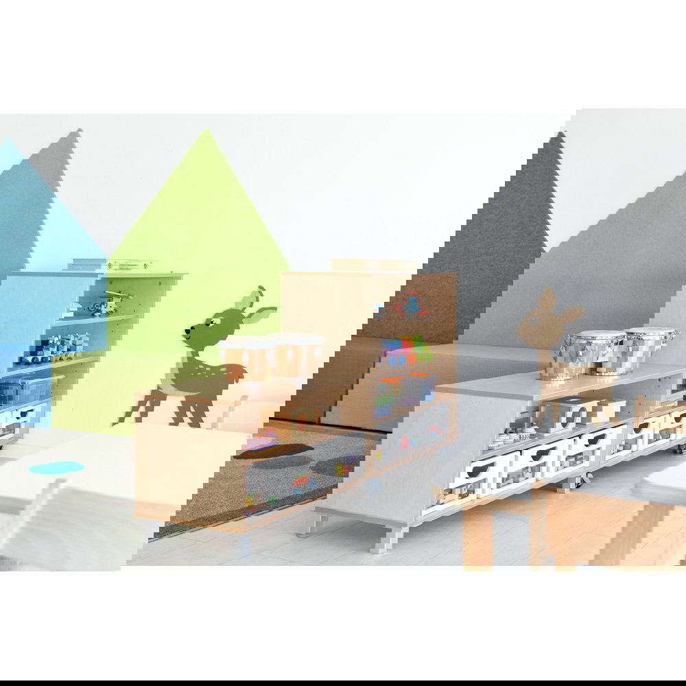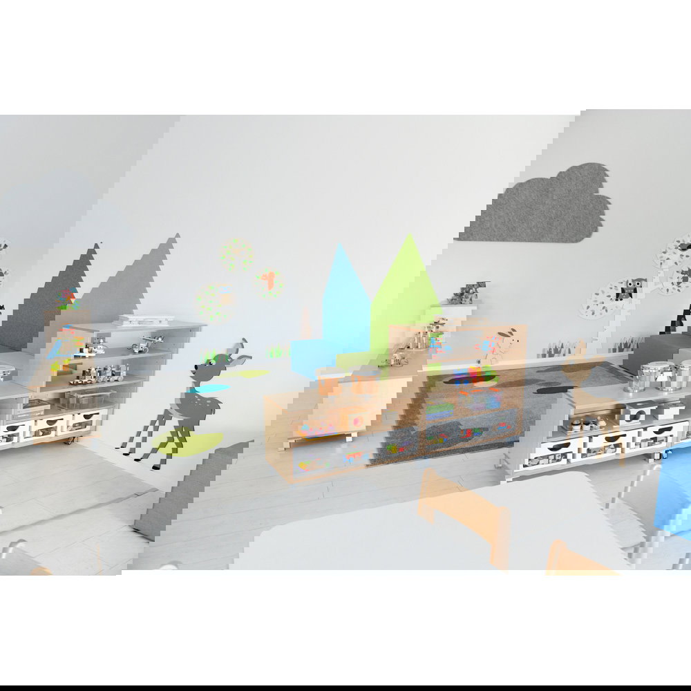 - Auf Rollen: Für maximale Flexibilität. Schieben Sie den Raumteiler einfach zur Seite, wenn Sie die Fläche für einen Sitzkreis oder Bewegungsspiele benötigen.
