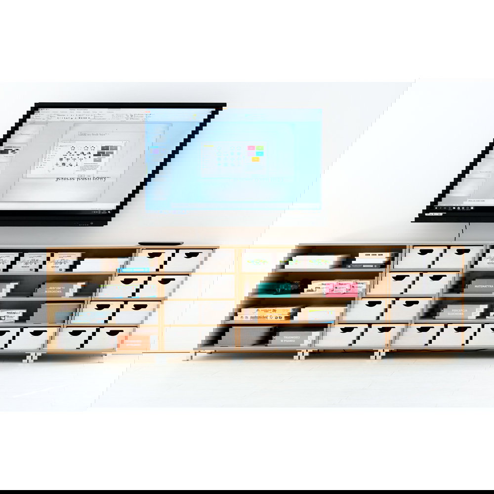 Mit seiner beeindruckenden Breite von 118 cm bietet dieser Schrank eine außergewöhnlich große Ablage- und Staufläche auf einer angenehmen Arbeitshöhe. Er eignet sich perfekt als zentrales Materialdepot, als Bücherregal für eine ganze Gruppe oder als Basis für kreative Auslagen. - Wahlweise auf Sockel oder Beinen