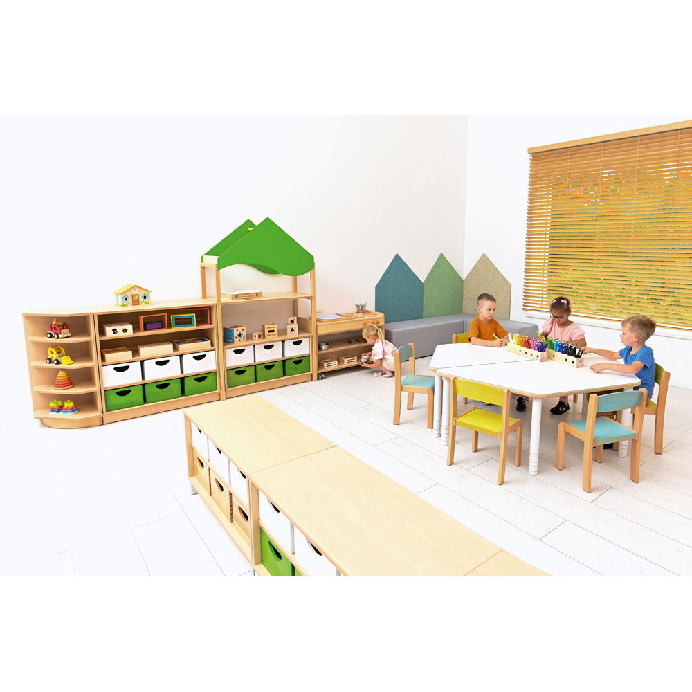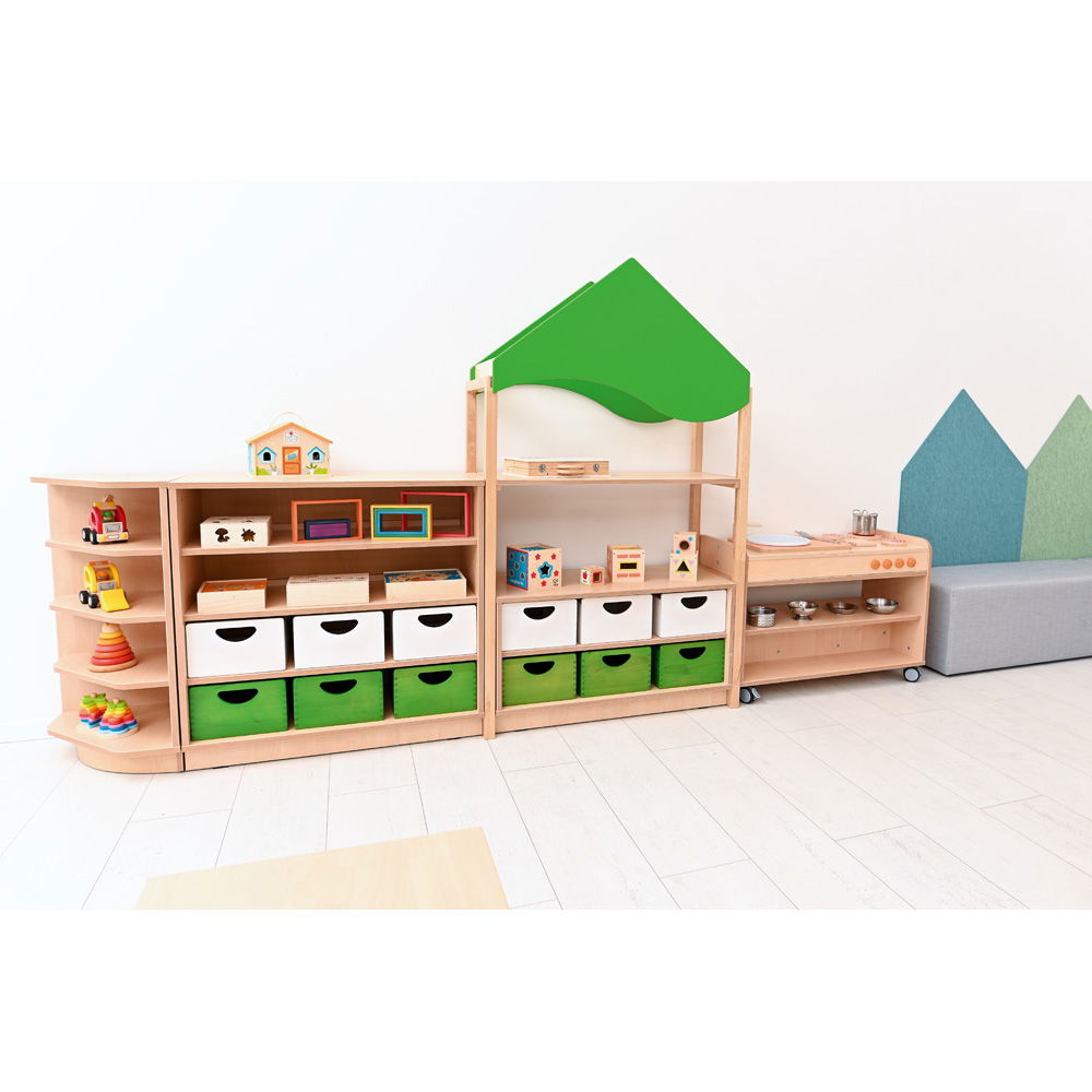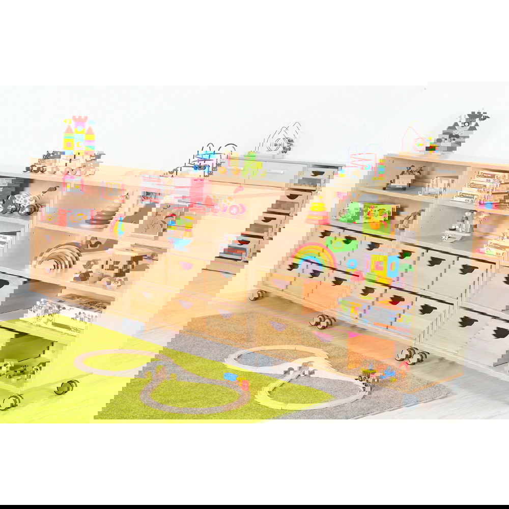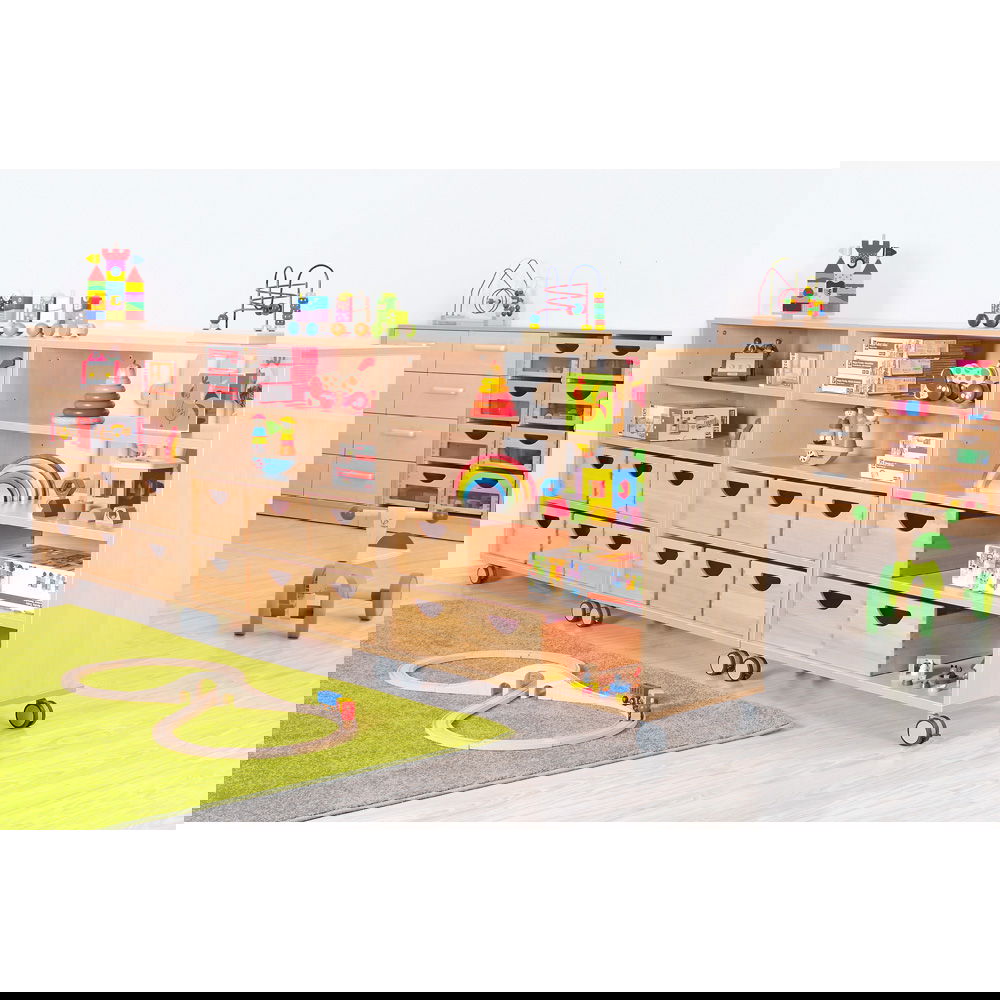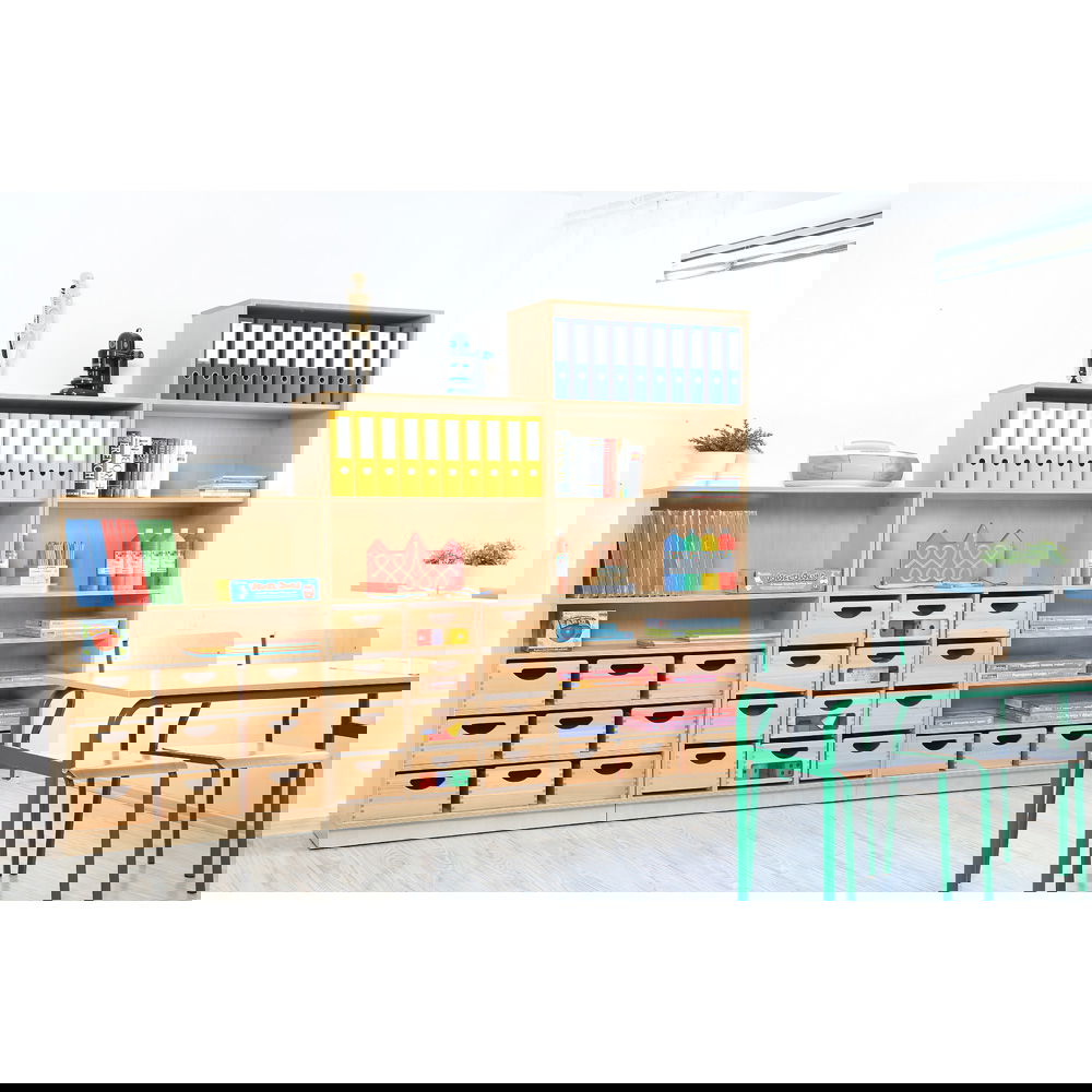 Vier breite Fächer bieten unglaublich viel Platz. Dieses Regal ist die perfekte Basis, um bis zu 12 separat erhältliche Flexi-Holzbehälter zu integrieren. Schaffen Sie ein unübertroffenes System zur Sortierung von Spielzeug, Büchern und Lernmaterialien. - Individuell gestaltbar