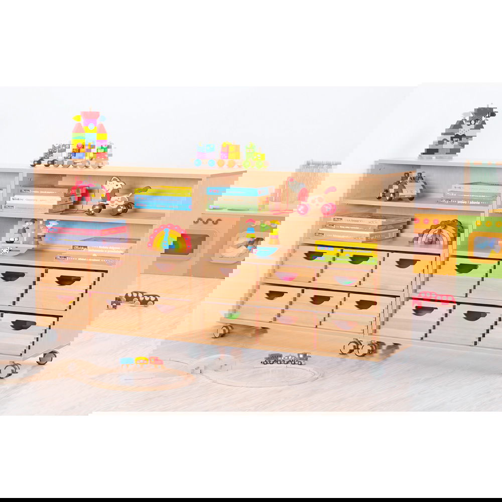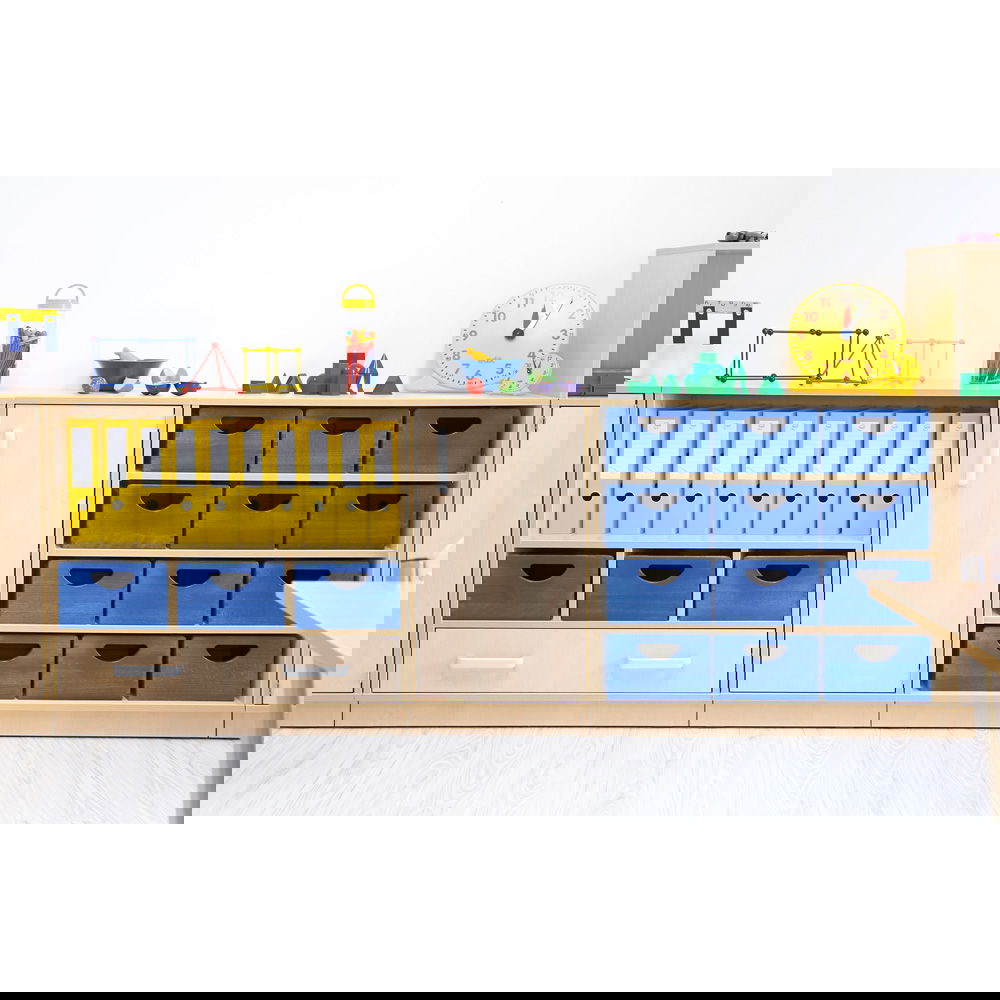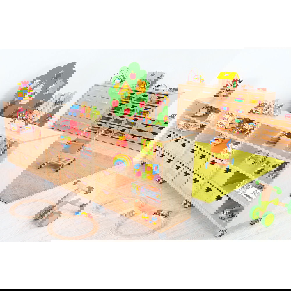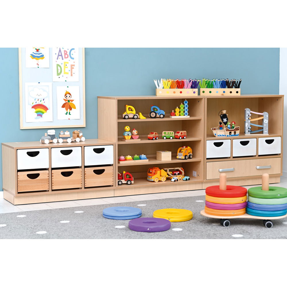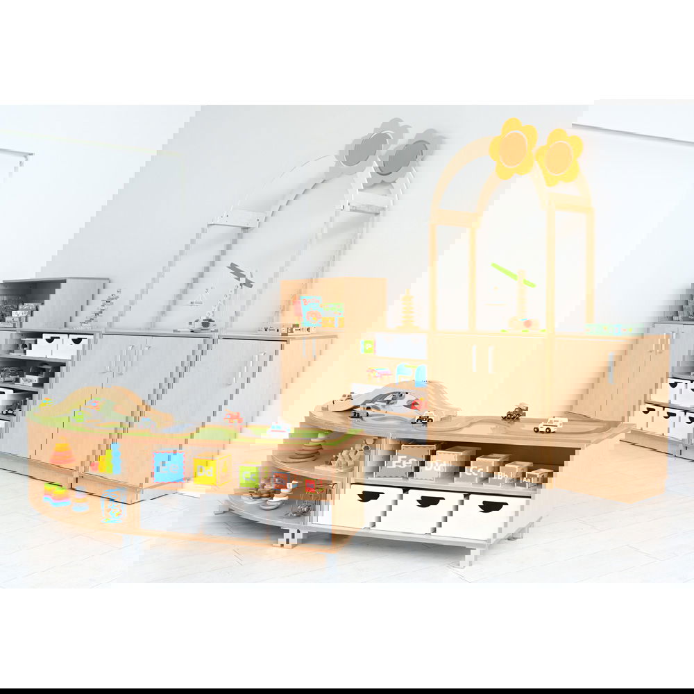 Vier breite Fächer bieten unglaublich viel Platz. Dieses Regal ist die perfekte Basis, um bis zu 12 separat erhältliche Flexi-Holzbehälter zu integrieren. Schaffen Sie ein unübertroffenes System zur Sortierung von Spielzeug, Büchern und Lernmaterialien. - Individuell gestaltbar