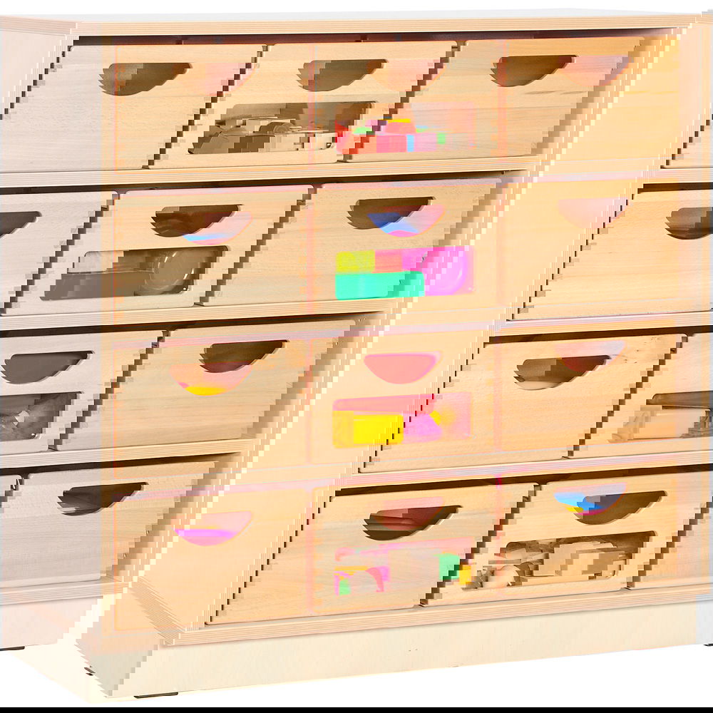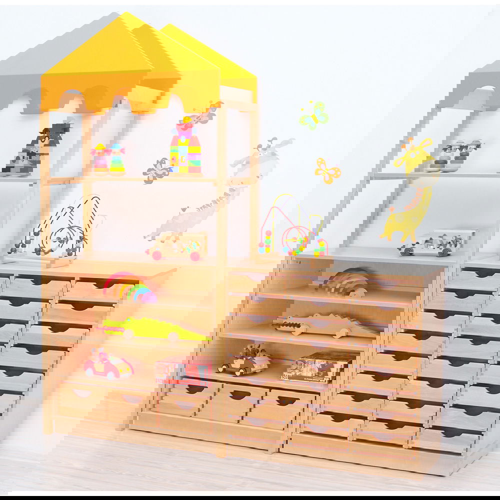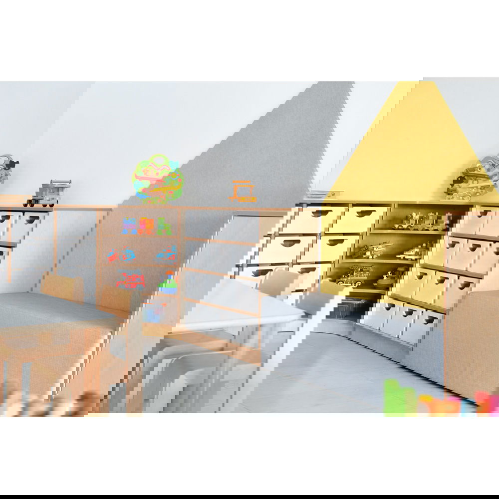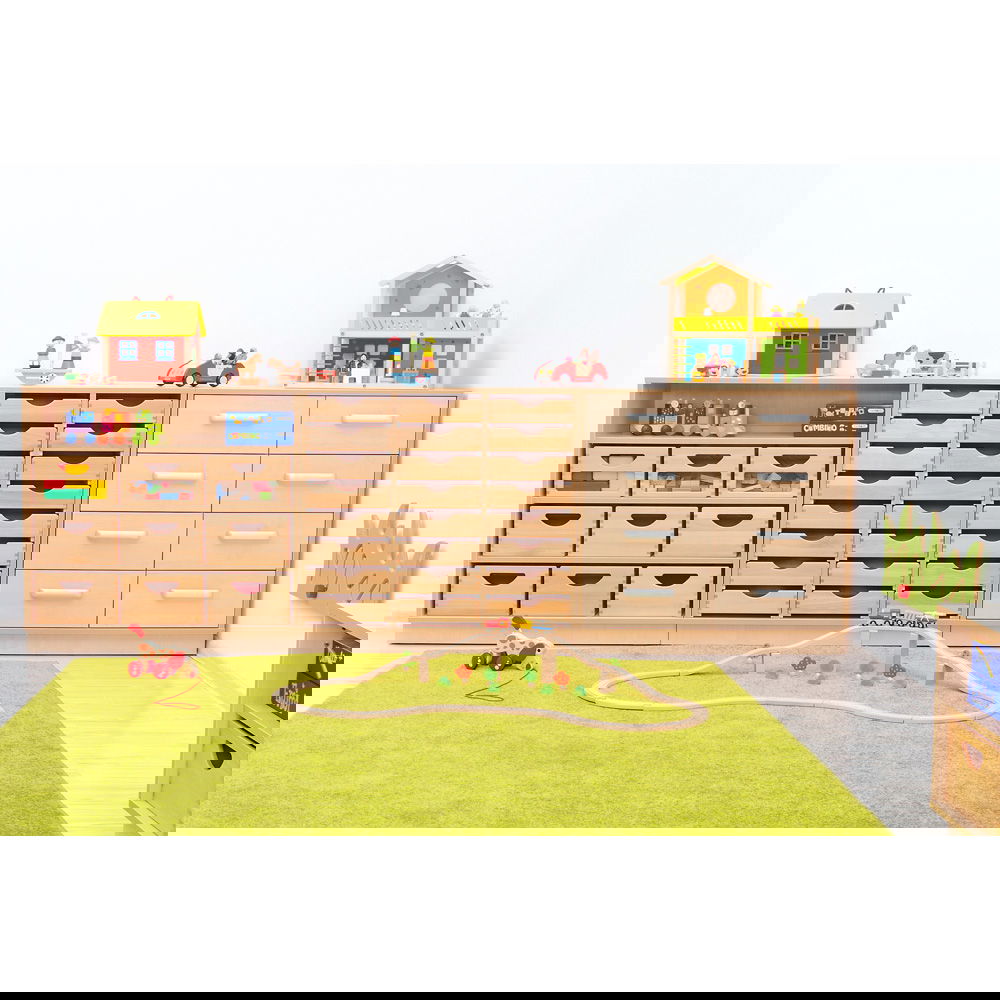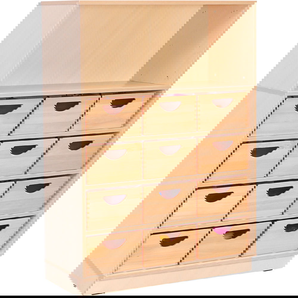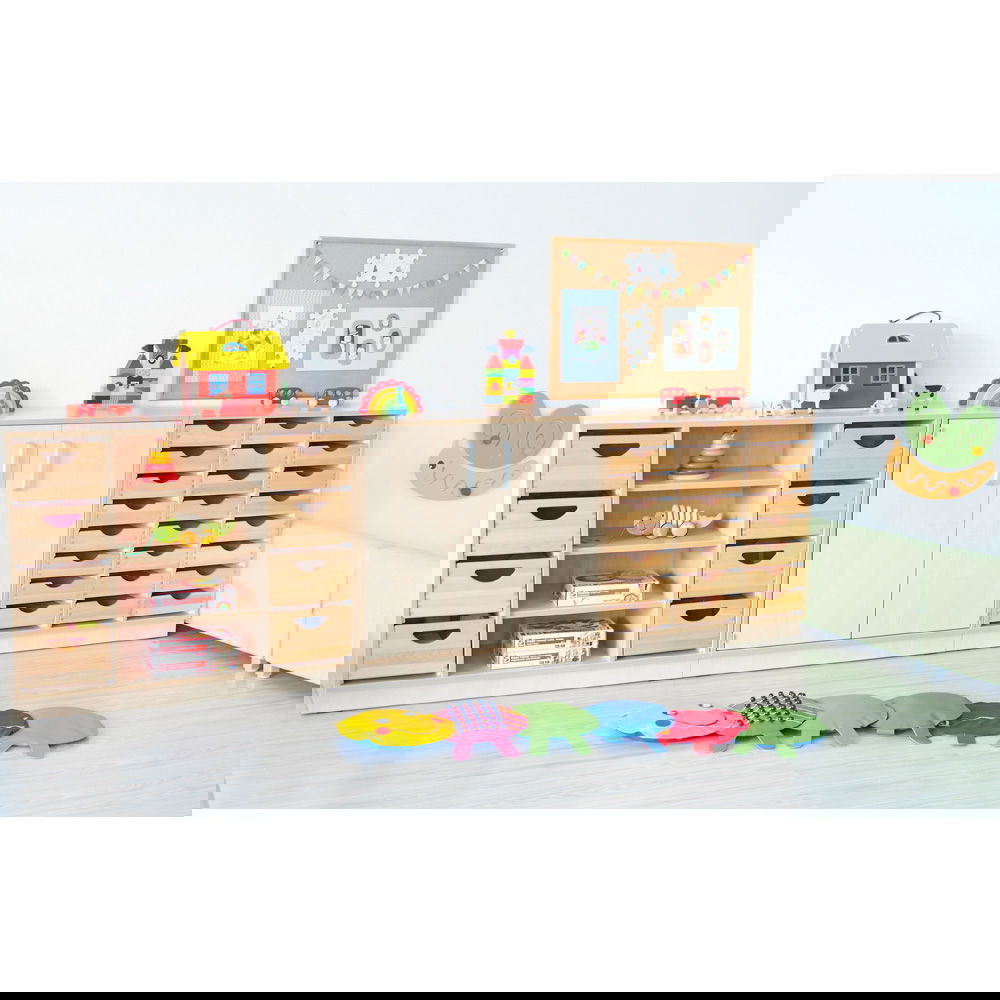 Vier breite Fächer bieten unglaublich viel Platz. Dieses Regal ist die perfekte Basis, um bis zu 12 separat erhältliche Flexi-Holzbehälter zu integrieren. Schaffen Sie ein unübertroffenes System zur Sortierung von Spielzeug, Büchern und Lernmaterialien. - Individuell gestaltbar