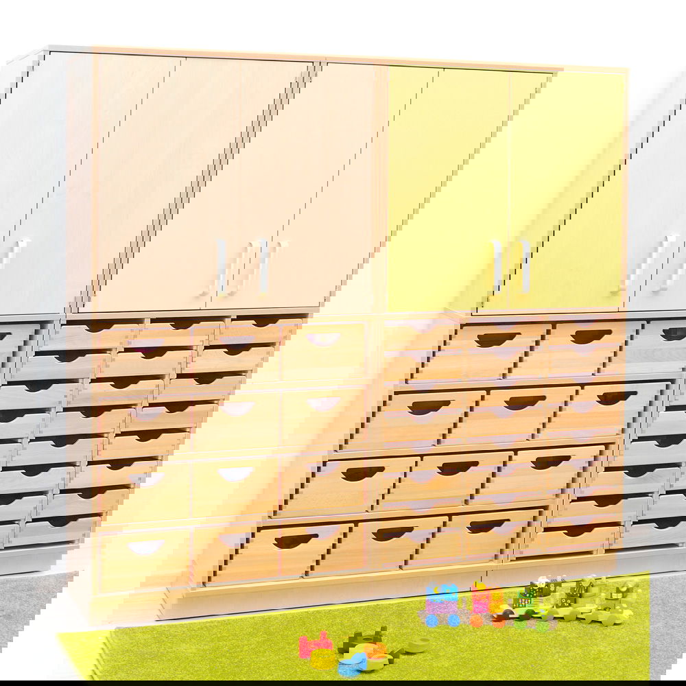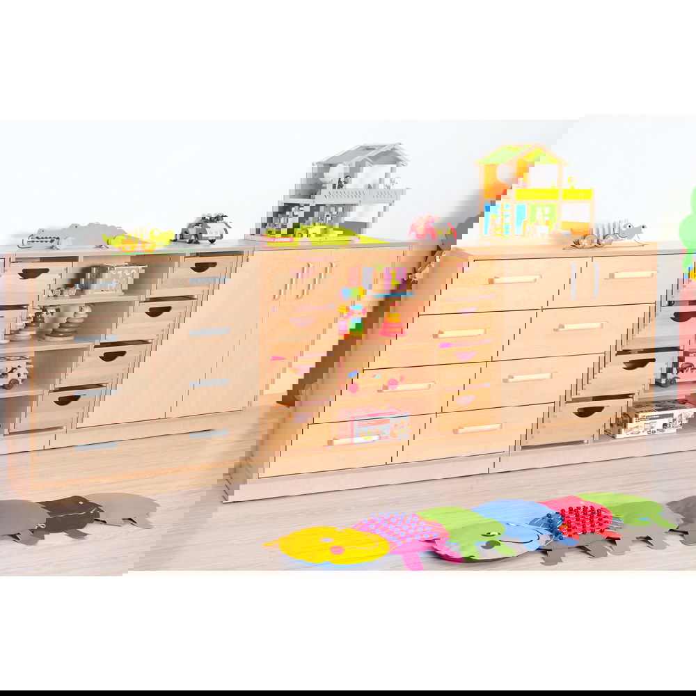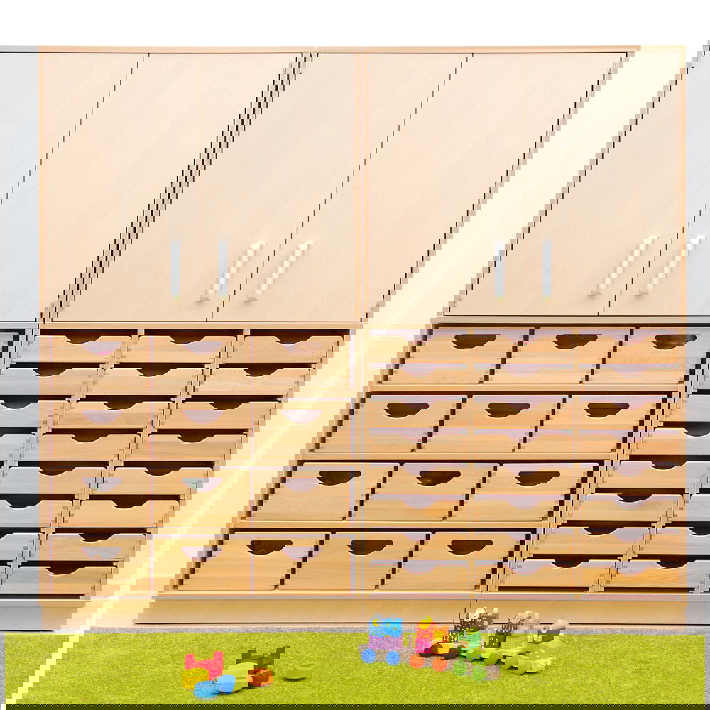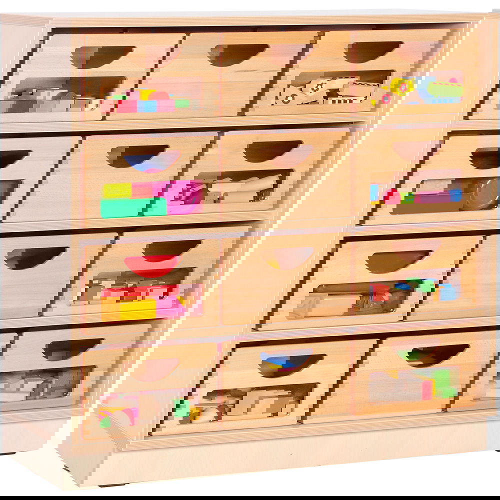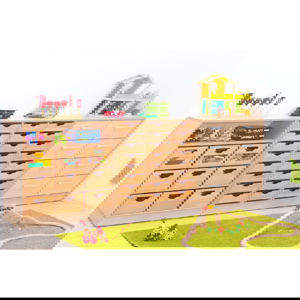 Vier breite Fächer bieten unglaublich viel Platz. Dieses Regal ist die perfekte Basis, um bis zu 12 separat erhältliche Flexi-Holzbehälter zu integrieren. Schaffen Sie ein unübertroffenes System zur Sortierung von Spielzeug, Büchern und Lernmaterialien. - Individuell gestaltbar