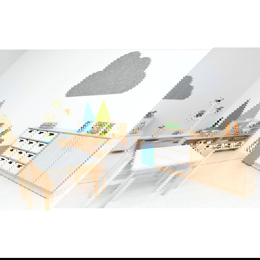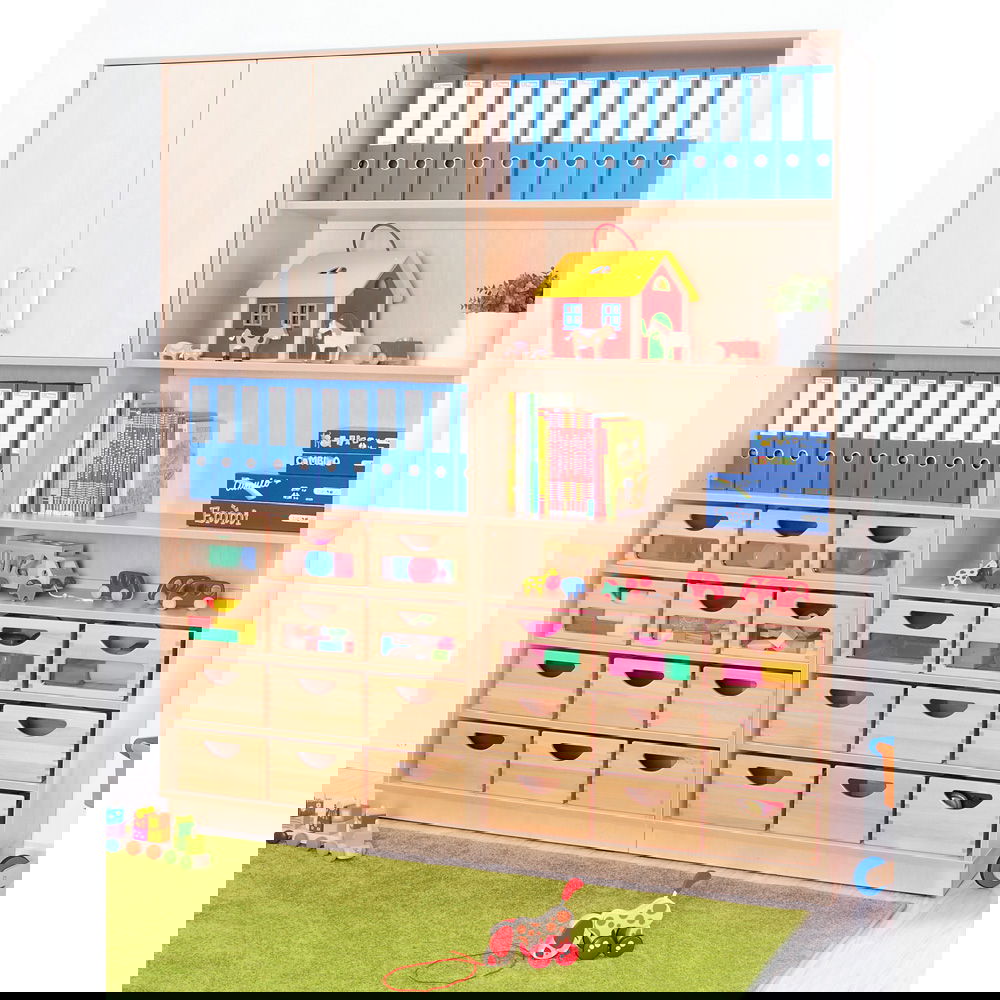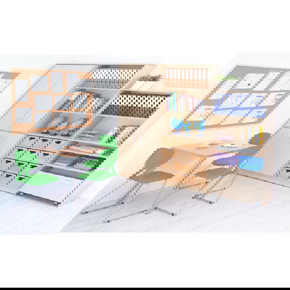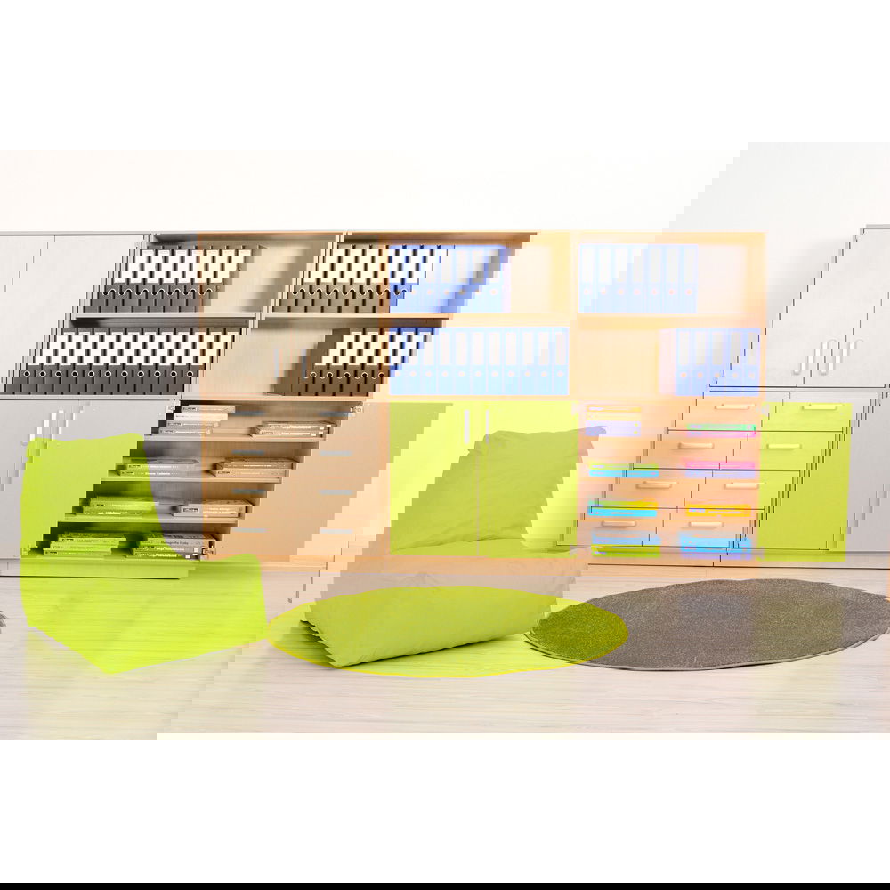 Ein Raum, der Kreativität und Lernen fördert, braucht Möbel, die sich anpassen können. Der Flexi Schrank M mit 3 Fachböden ist das perfekte Beispiel für diese Wandlungsfähigkeit. Mit seiner komfortablen mittelhohen Bauweise und der offenen, großzügigen Gestaltung ist er ein echter Alleskönner für Kitas, Schulen und Hortgruppen. Ob als klassisches Bücherregal, als übersichtliche Materialstation oder als Basis für ein individuelles Schranksystem – dieses Möbelstück bietet die ideale Grundlage für eine strukturierte und zugleich einladende Umgebung.