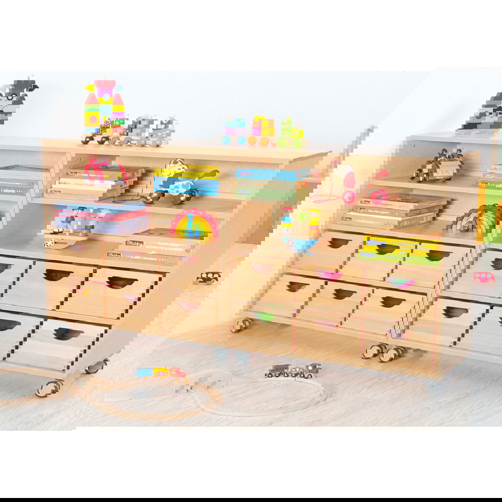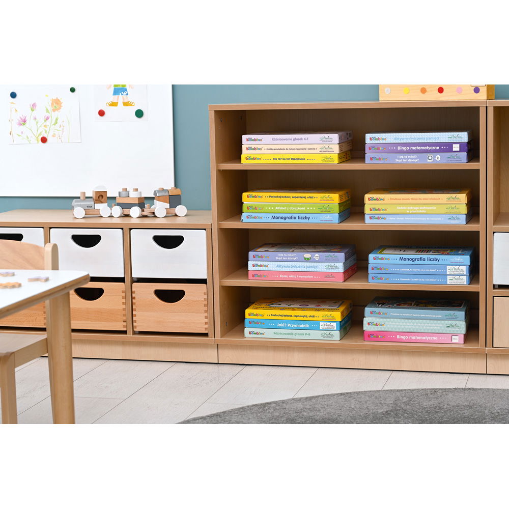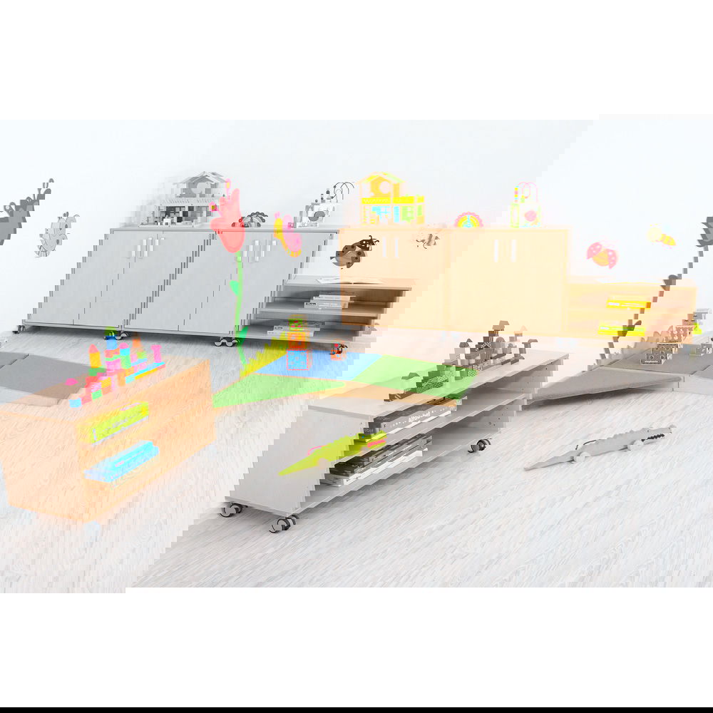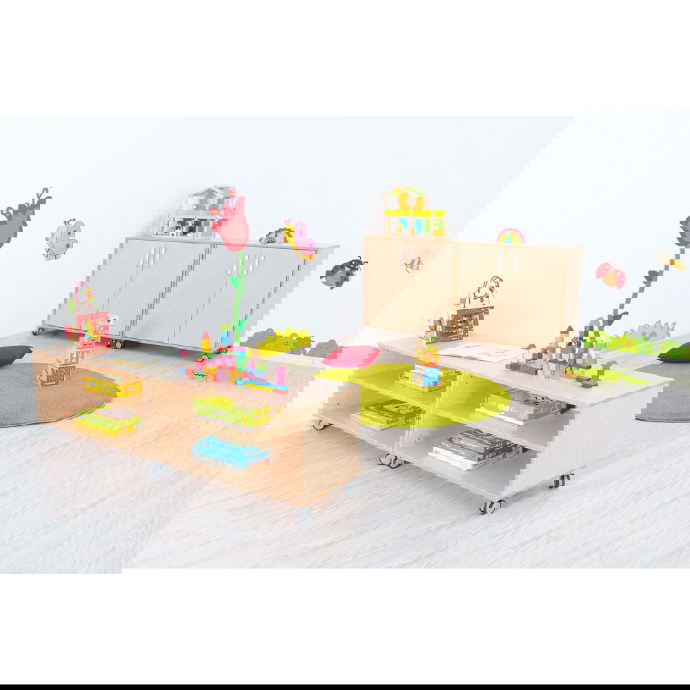Ein Raum, der Kreativität und Lernen fördert, braucht Möbel, die sich anpassen können. Der Flexi Schrank M mit 3 Fachböden ist das perfekte Beispiel für diese Wandlungsfähigkeit. Mit seiner komfortablen mittelhohen Bauweise und der offenen, großzügigen Gestaltung ist er ein echter Alleskönner für Kitas, Schulen und Hortgruppen. Ob als klassisches Bücherregal, als übersichtliche Materialstation oder als Basis für ein individuelles Schranksystem – dieses Möbelstück bietet die ideale Grundlage für eine strukturierte und zugleich einladende Umgebung.