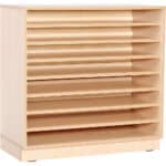 Eine zusätzliche Aufwertung ist durch die Ergänzung mit 24 flachen Holzbehältern (Modellnummern 126045, 126064-126069, separat erhältlich) möglich, wodurch der Schrank noch anpassungsfähiger wird. Beachten Sie bitte, dass die Ergänzung mit Türen bei diesem Modell nicht möglich ist.