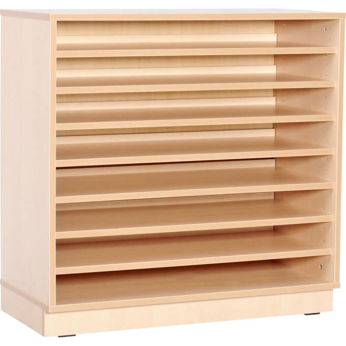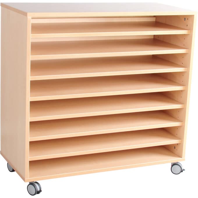 Unser Flexi Schrank M mit 7 Fachböden ist die perfekte Ergänzung für jeden Kindergarten und jede Schule. Mit einer Breite von 89,1 cm, einer Tiefe von 41,5 cm und einer Höhe von 87,1 cm bietet dieser Schrank reichlich Stauraum für diverse Materialien und sorgt für eine aufgeräumte Umgebung. Jedes Fach hat eine Höhe von 7,8 cm, was ausreichend Platz für kleinere Gegenstände bietet.