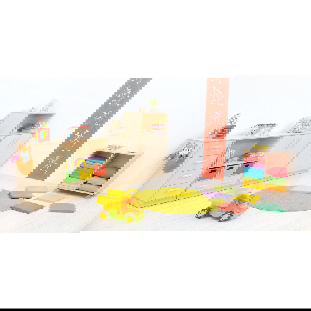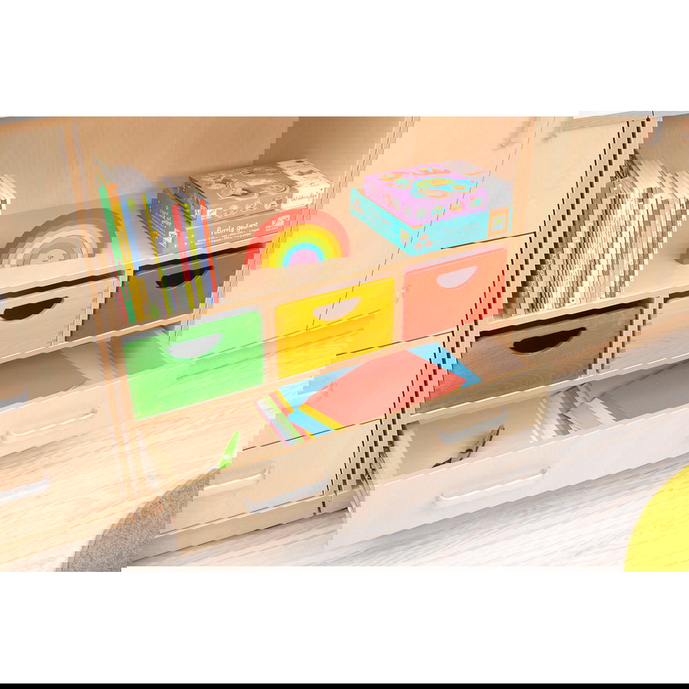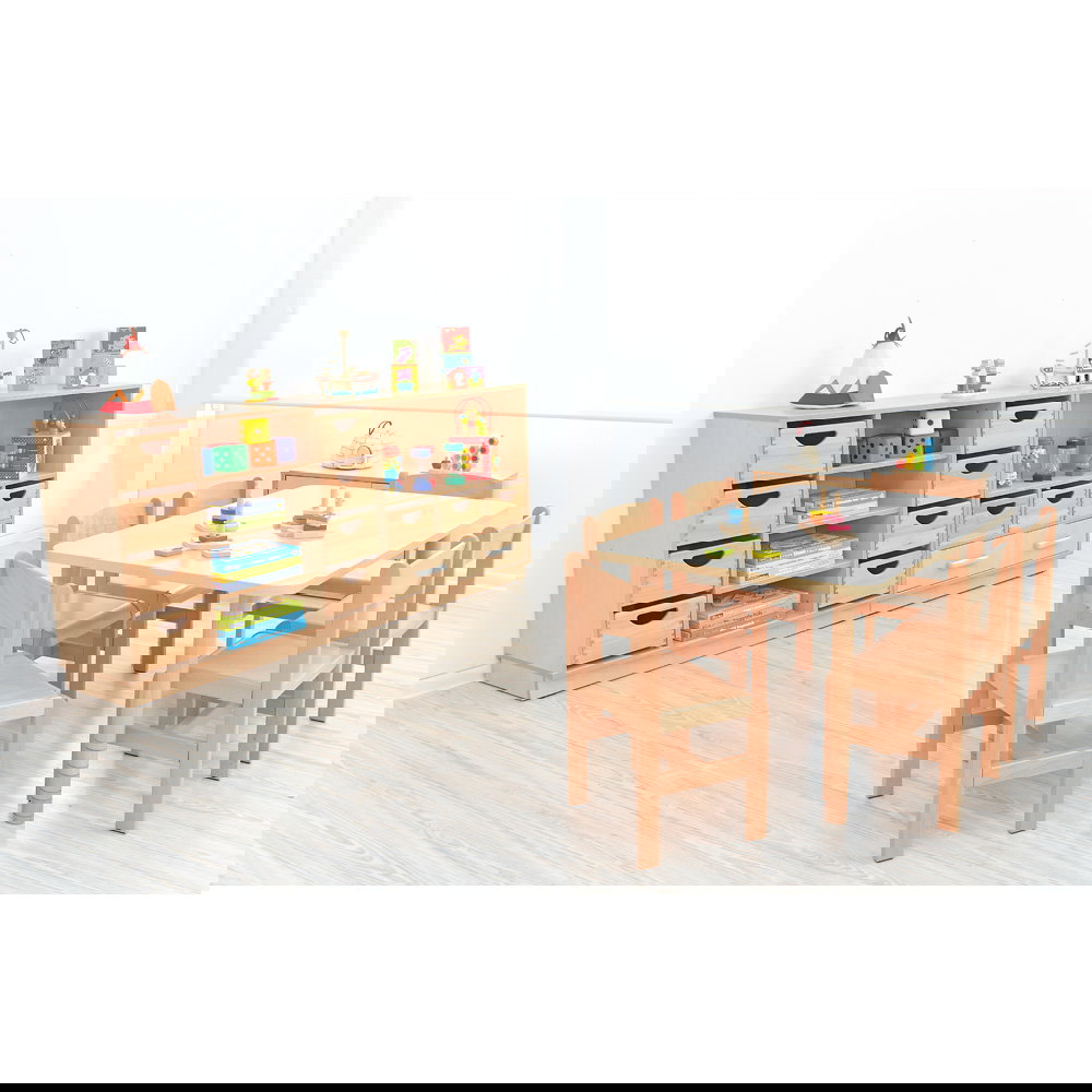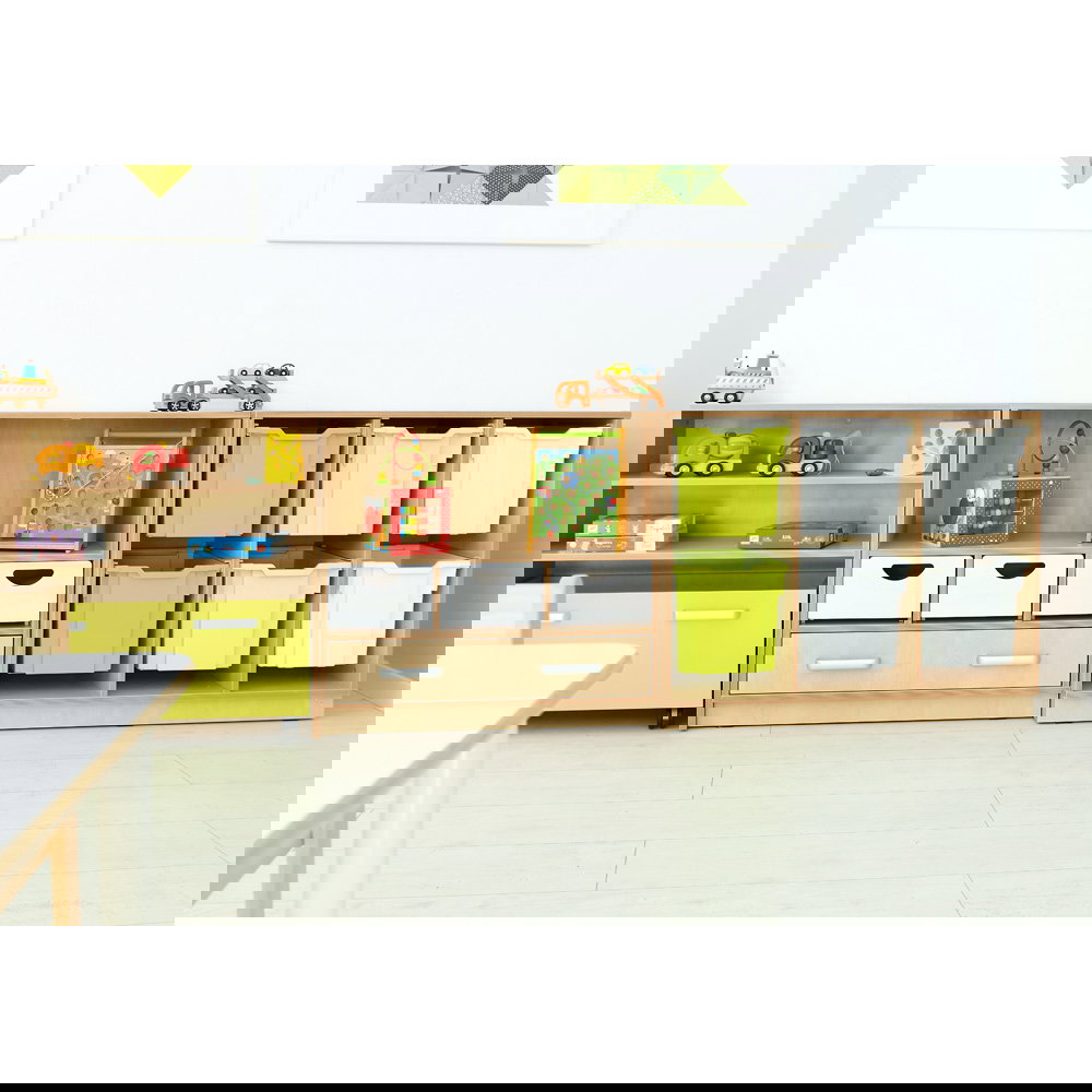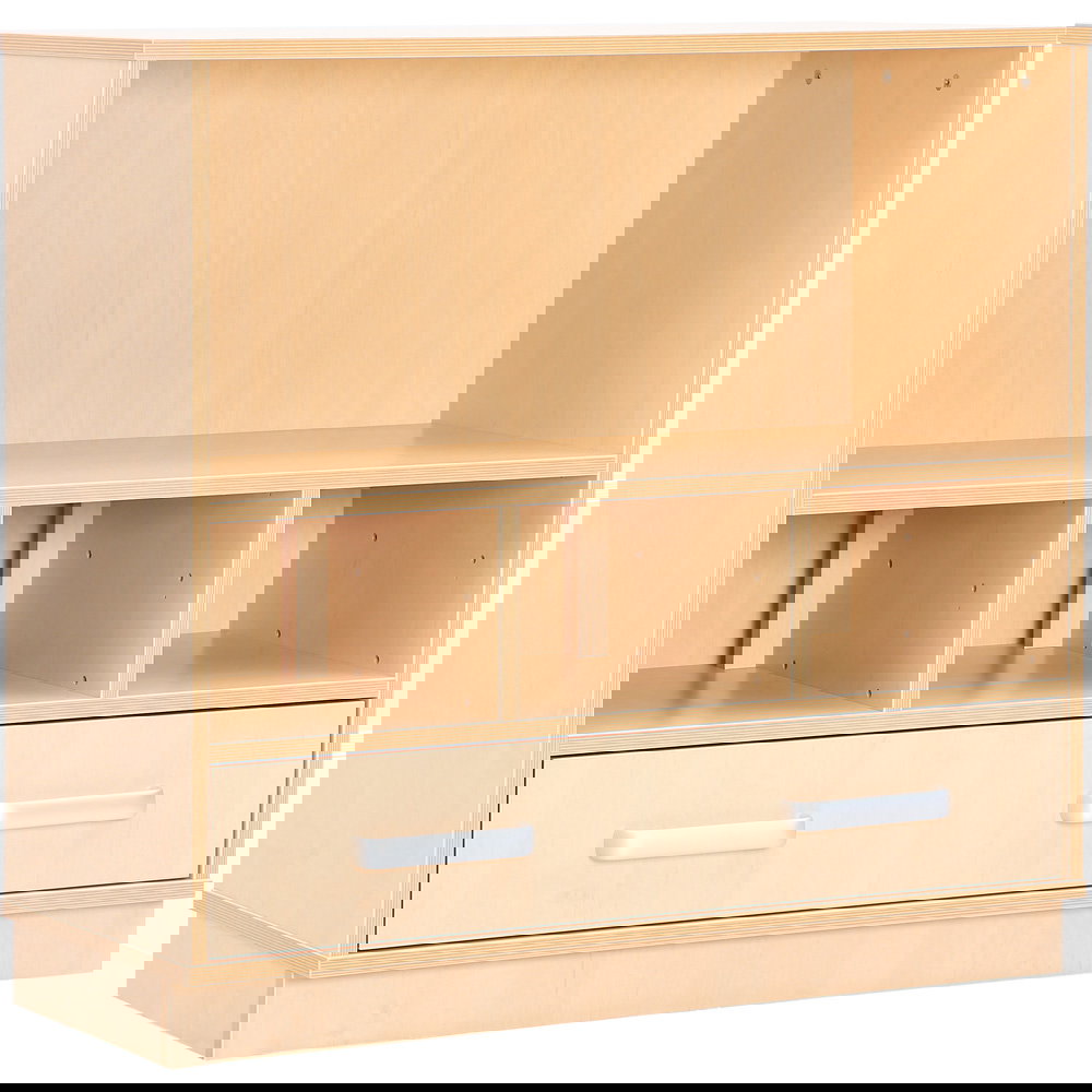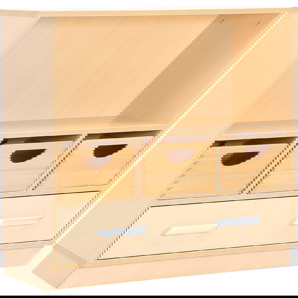 Als Teil der vielseitigen Flexi-Kollektion verbindet dieser Schrank Funktionalität mit einer warmen, einladenden Ästhetik im Birke-Dekor. Er ist nicht nur ein Stauraummöbel, sondern ein echtes Arbeitsinstrument. Die Kombination aus einem hohen Fach für stehende Ordner und einer breiten Schublade für flaches Papier macht ihn zum idealen Begleiter neben dem Schreibtisch, im Kunstraum oder als zentrale Verwaltungsstation im Gruppenraum. Ob auf einem stabilen Sockel für eine geschlossene Optik oder auf Beinen für mehr Leichtigkeit – dieser Schrank bringt professionelle Ordnung in den pädagogischen Alltag.