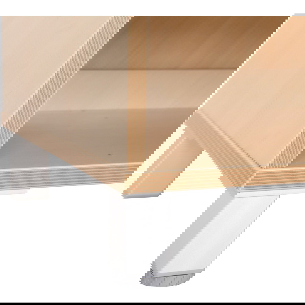 Das freundliche Birke-Dekor und die klare, geradlinige Form strahlen Ruhe und Natürlichkeit aus – die perfekte Kulisse für kreative Entfaltung. Doch seine wahre Stärke liegt in seiner immensen Kapazität und Anpassungsfähigkeit. Die beiden langen, offenen Fächer sind wie geschaffen dafür, mit bis zu acht der separat erhältlichen Holzbehälter bestückt zu werden. So verwandelt sich das Regal in ein perfekt sortiertes System, in dem jedes Spielzeug seinen festen Platz findet. Ob Sie die stabile, bodenbündige Variante auf Sockel bevorzugen oder die leichtere, schwebende Optik auf Beinen – dieses Möbelstück ist die ideale Grundlage für große Ideen und kleine Ordungsfans.