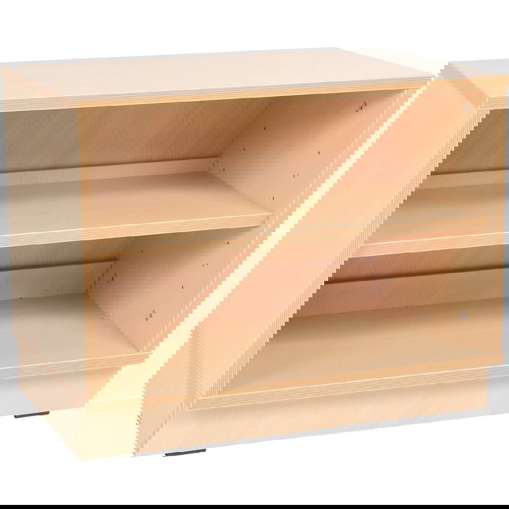 Der Schrank ist perfekt darauf vorbereitet, mit den separat erhältlichen Flexi-Holzbehältern bestückt zu werden. Bis zu vier Behälter finden hier Platz und verwandeln das offene Regal in ein übersichtliches System zur Aufbewahrung von Kleinteilen. - Robuste Qualität für den Kindergarten-Alltag