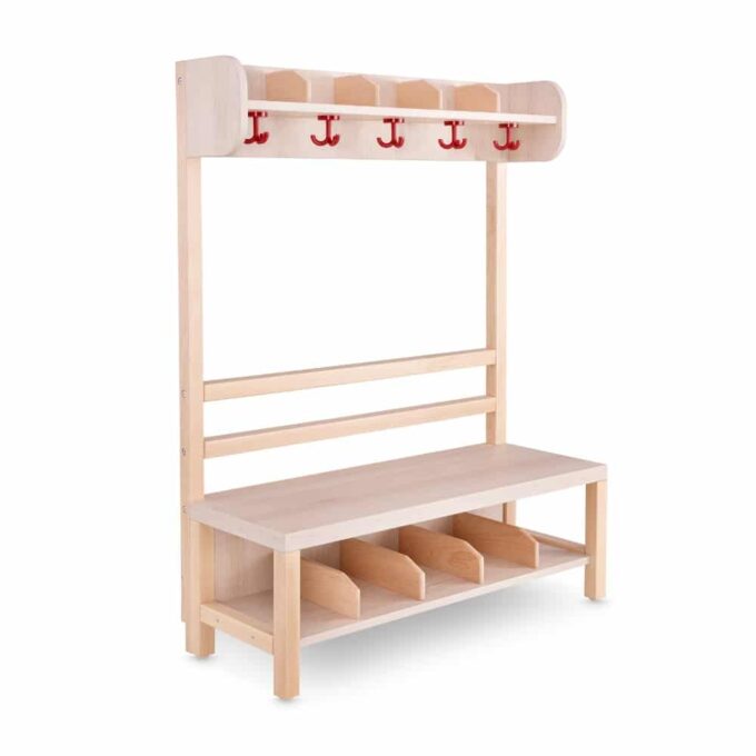 Unsere Holz- Garderoben sind ein durchdachtes Möbelsystem, welches wir speziell an die Bedürfnisse von Kindern angepasst haben. Ausreichend große Fächer sorgen dafür, dass alle Kinder- vom Krippenkind bis zum Schulkind-ihre Sachen bequem unterbringen können. Drei verschiedene Sitzhöhen garantieren ein altersgerechtes und rückenschonendes Sitzen.