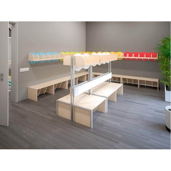 Garderobe Wolke 3 mit Gestell aus Ahorn in 7 Farben für Kindergärten
