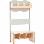 Komplette Garderobe mit stabilem, funktionellem Metallgestell, Sitzbank und Ablage mit Fächern.