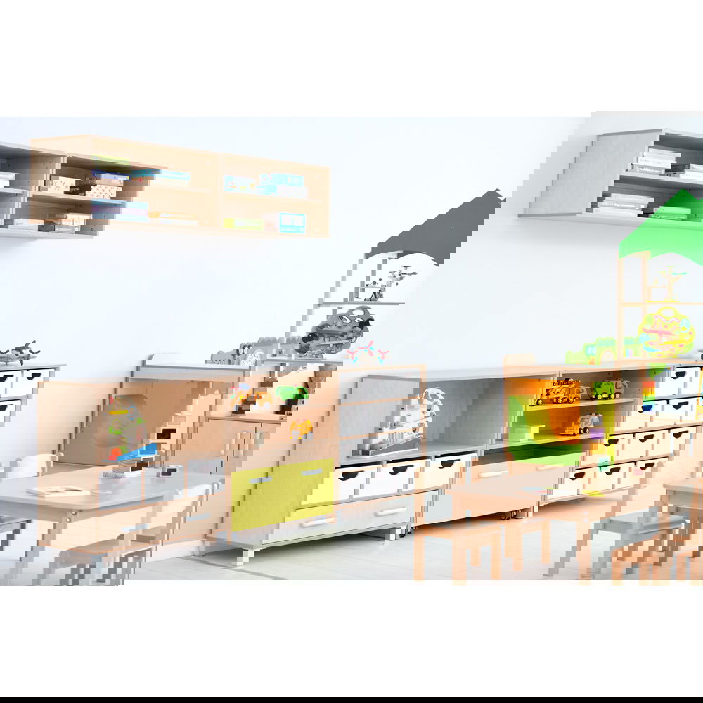 Gewinnen Sie wertvollen Platz zurück! Indem Sie Stauraum an die Wand verlagern, bleibt der Boden frei für Tische, Spielecken oder Laufwege. Dies ist besonders in kleineren Räumen ein entscheidender Vorteil, der für mehr Bewegungsfreiheit sorgt. - Wahlweise in zwei Tiefen erhältlich