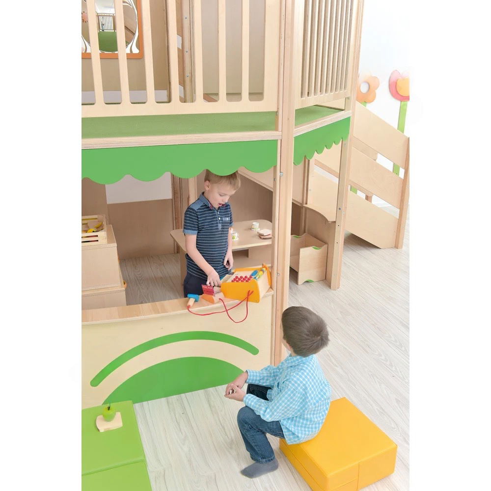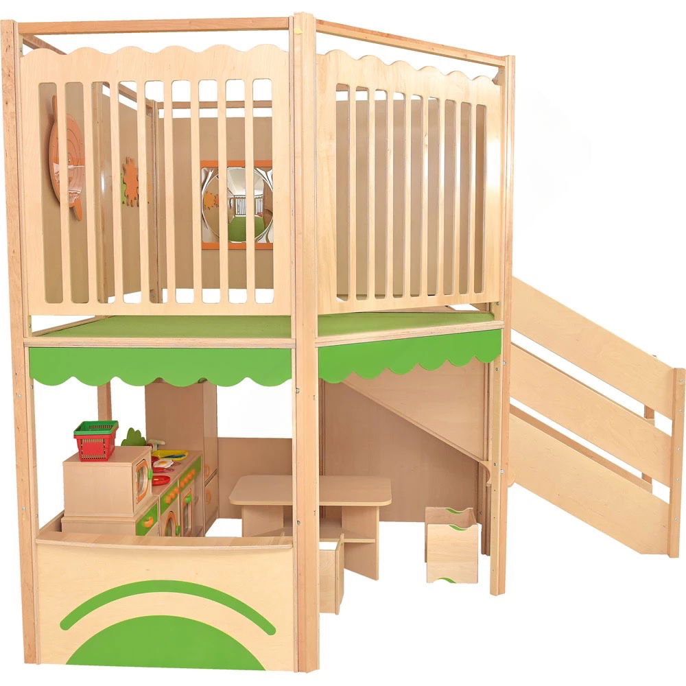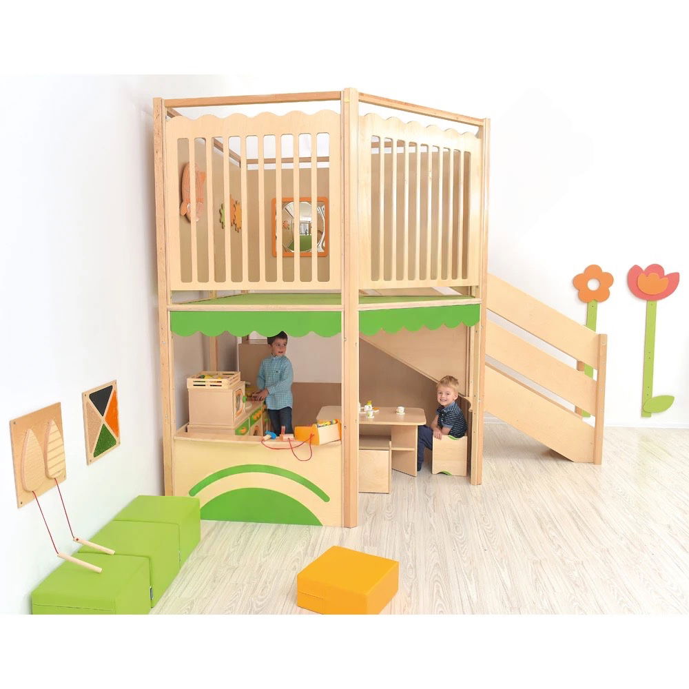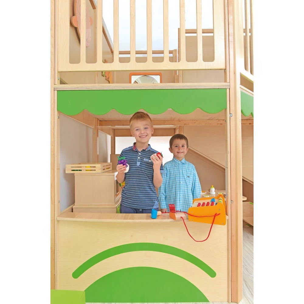 Die großzügige Fläche sowohl oben als auch unten lädt zum gemeinsamen Spielen in der Gruppe ein. Kinder lernen, miteinander zu interagieren, Rollen zu verteilen und gemeinsam fantasievolle Welten zu erschaffen.