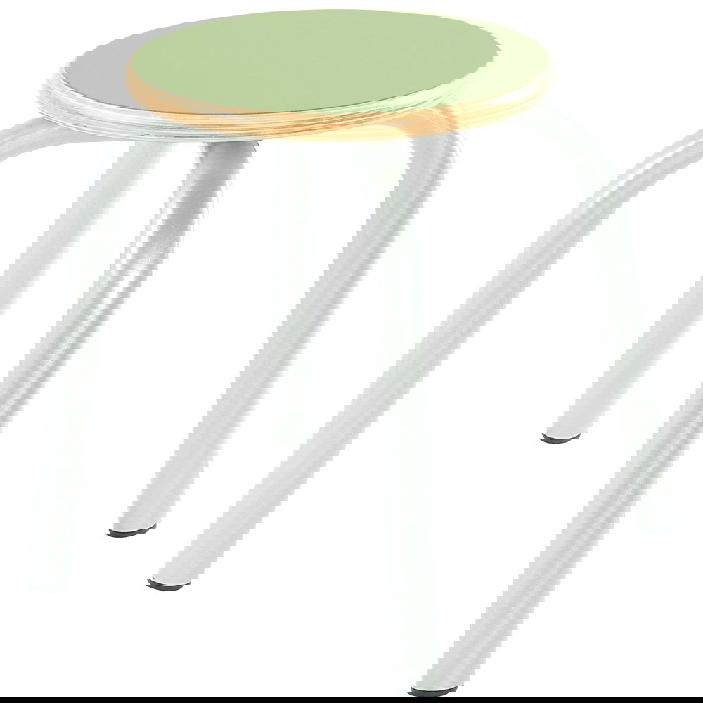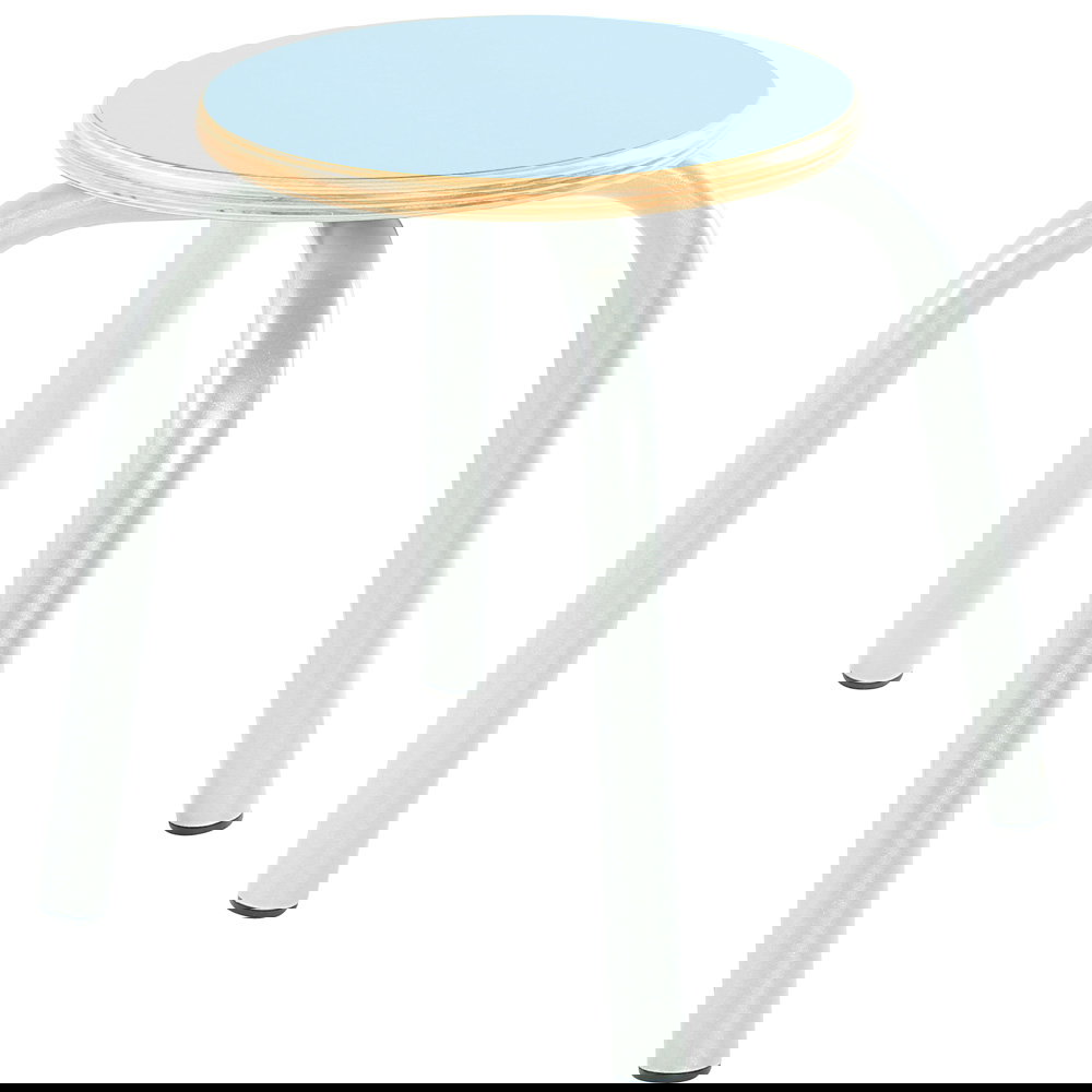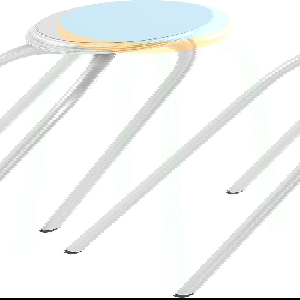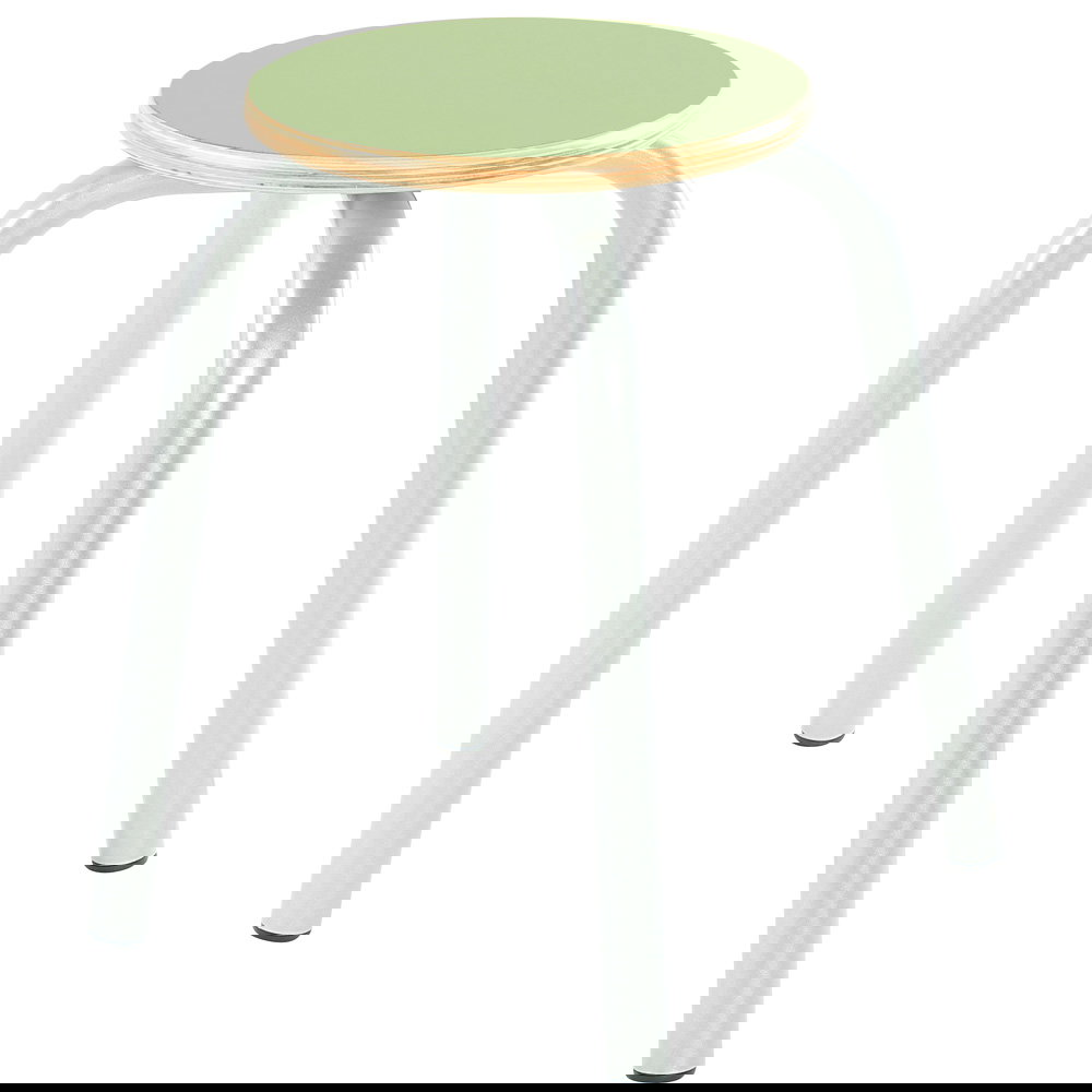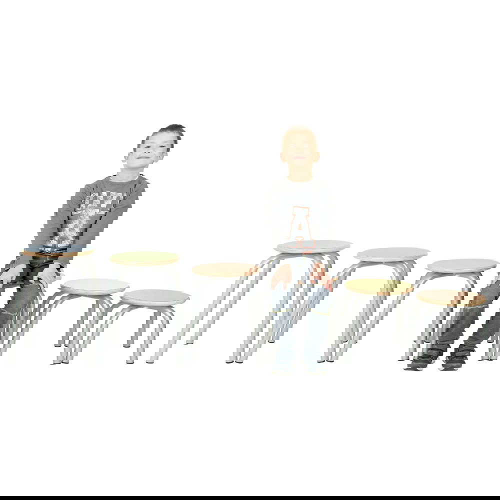 Das Herzstück des Hockers ist seine extrem widerstandsfähige Sitzfläche. Sie besteht aus 19 mm starkem Sperrholz, das mit einer hochwertigen HPL-Beschichtung versehen ist. Diese Oberfläche ist nicht nur kratzfest und leicht zu reinigen, sondern auch in vier ansprechenden Farben erhältlich: klassisches Buche-Natur, sonniges Gelb, beruhigendes Hellblau und frisches Grün. Diese Farbvielfalt ermöglicht es, Lern- und Spielumgebungen lebendig und freundlich zu gestalten. Das stabile Vierbein-Gestell aus Metallrohr (Ø 32 mm) sorgt für absolute Kippsicherheit, während spezielle Kunststoffgleiter an den Füßen den Boden vor Kratzern schützen.