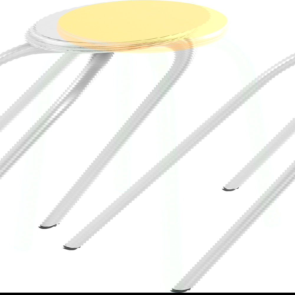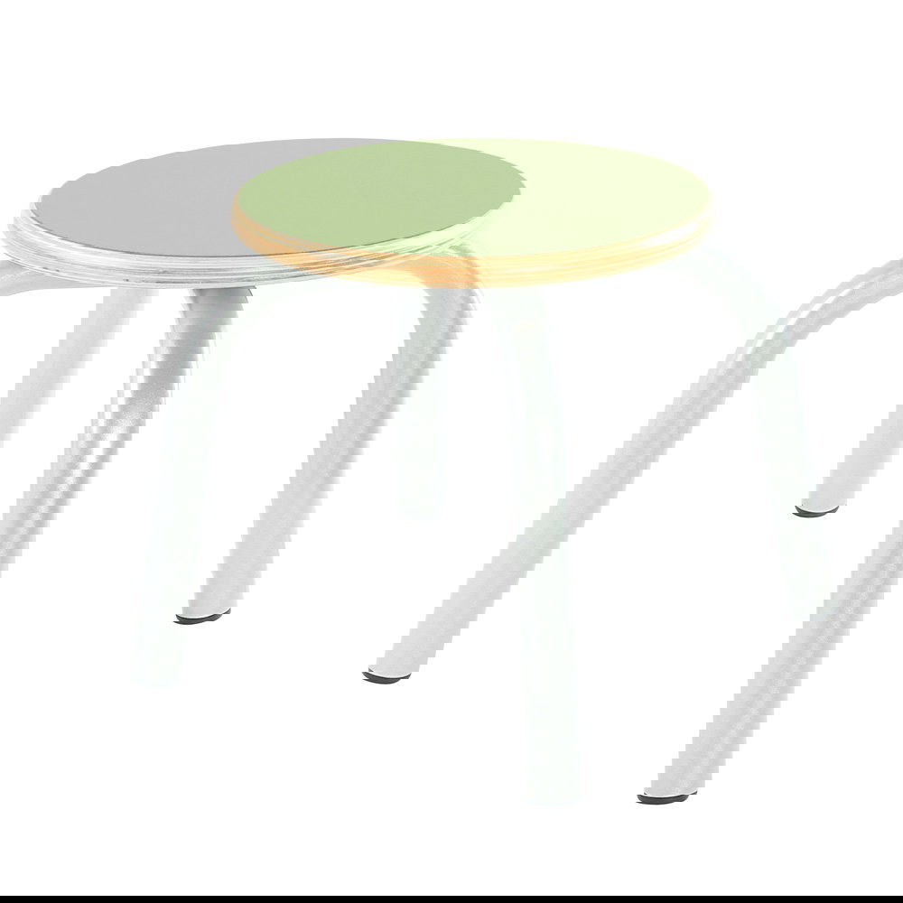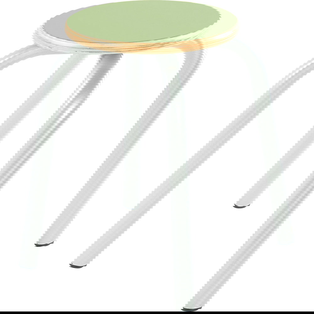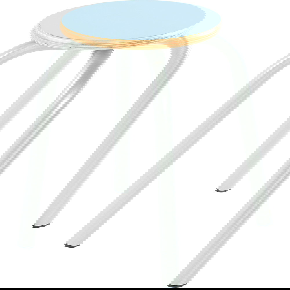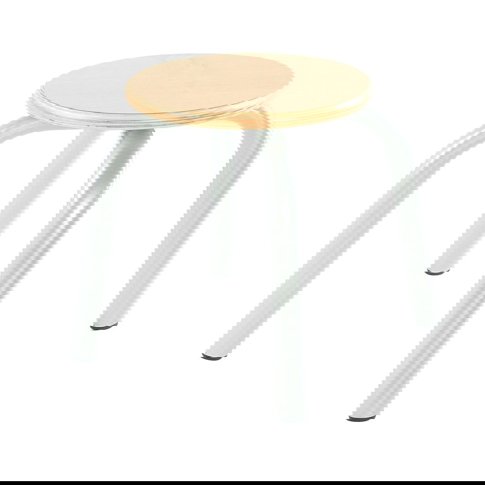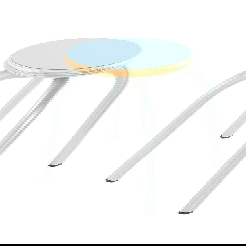 Das Herzstück des Hockers ist seine extrem widerstandsfähige Sitzfläche. Sie besteht aus 19 mm starkem Sperrholz, das mit einer hochwertigen HPL-Beschichtung versehen ist. Diese Oberfläche ist nicht nur kratzfest und leicht zu reinigen, sondern auch in vier ansprechenden Farben erhältlich: klassisches Buche-Natur, sonniges Gelb, beruhigendes Hellblau und frisches Grün. Diese Farbvielfalt ermöglicht es, Lern- und Spielumgebungen lebendig und freundlich zu gestalten. Das stabile Vierbein-Gestell aus Metallrohr (Ø 32 mm) sorgt für absolute Kippsicherheit, während spezielle Kunststoffgleiter an den Füßen den Boden vor Kratzern schützen.