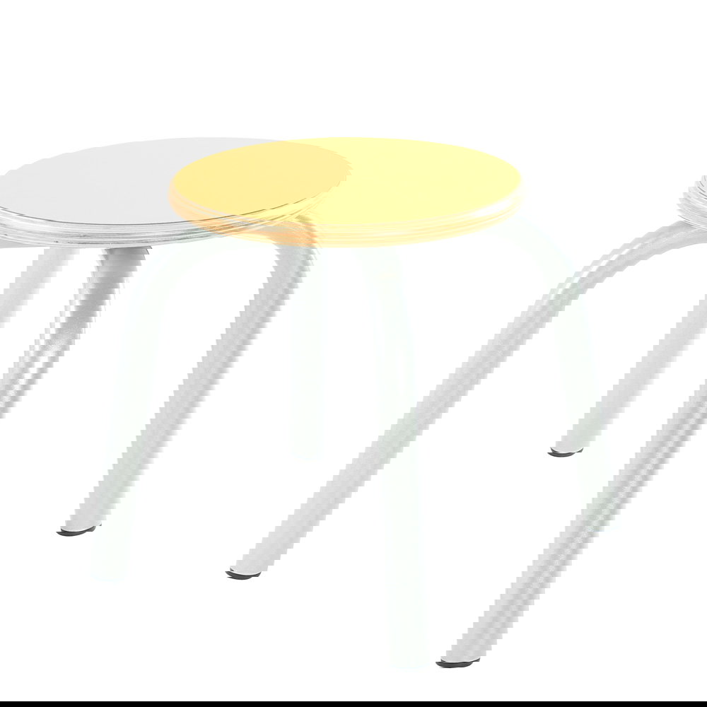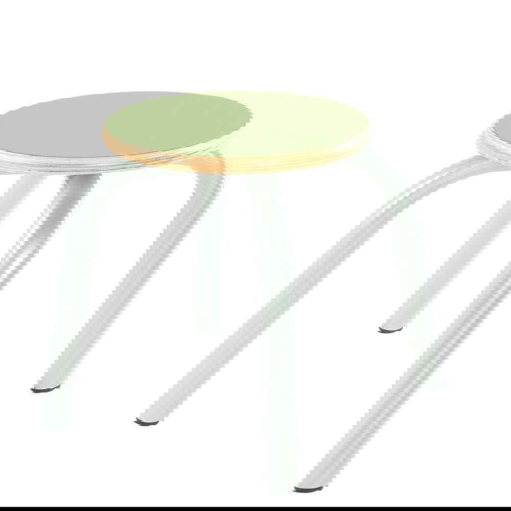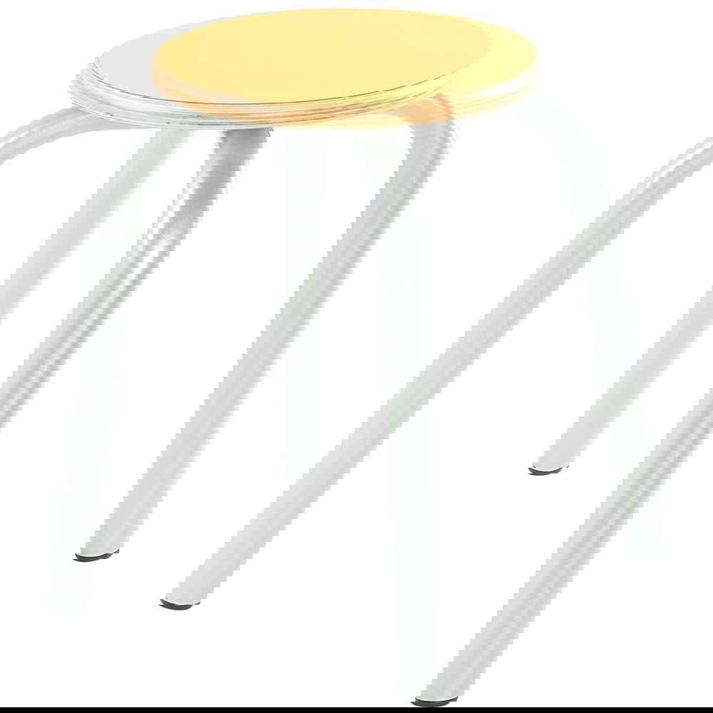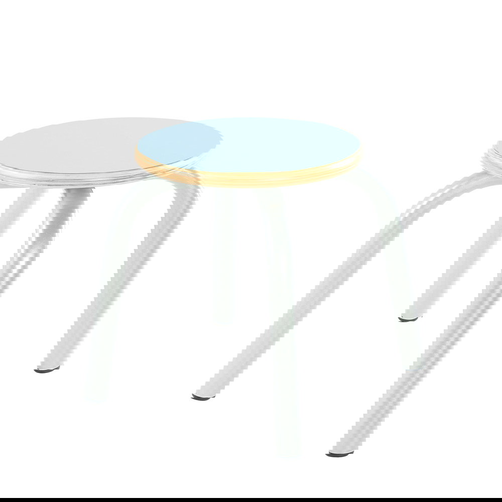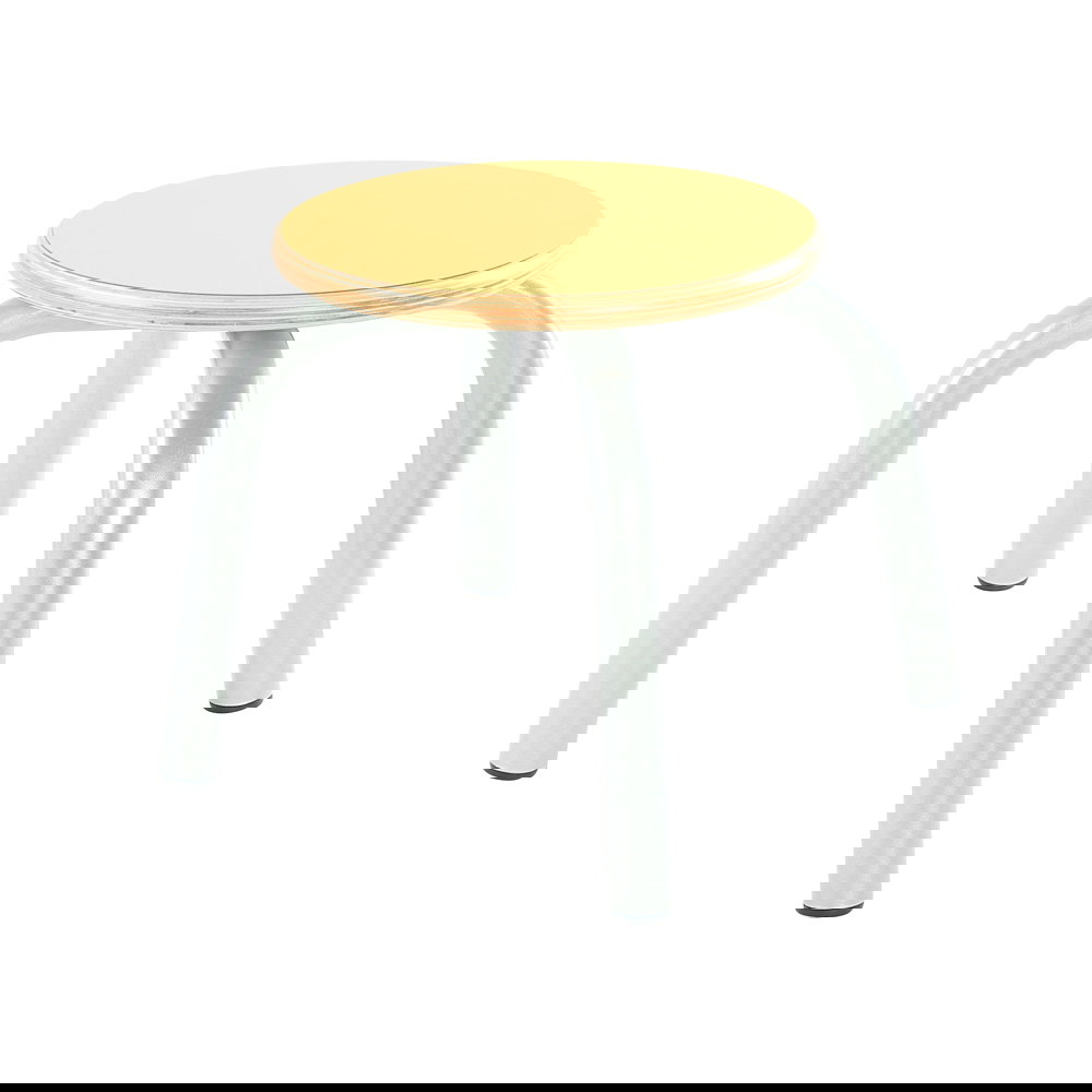 Das Herzstück des Hockers ist seine extrem widerstandsfähige Sitzfläche. Sie besteht aus 19 mm starkem Sperrholz, das mit einer hochwertigen HPL-Beschichtung versehen ist. Diese Oberfläche ist nicht nur kratzfest und leicht zu reinigen, sondern auch in vier ansprechenden Farben erhältlich: klassisches Buche-Natur, sonniges Gelb, beruhigendes Hellblau und frisches Grün. Diese Farbvielfalt ermöglicht es, Lern- und Spielumgebungen lebendig und freundlich zu gestalten. Das stabile Vierbein-Gestell aus Metallrohr (Ø 32 mm) sorgt für absolute Kippsicherheit, während spezielle Kunststoffgleiter an den Füßen den Boden vor Kratzern schützen.