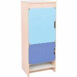 Dieser farbenfrohe Regalschrank bietet kleinen Küchenmeistern die Möglichkeit, ihre Spielgeräte und Utensilien ordentlich zu verstauen. Das offene Fach, die vier Fächer hinter den Vorhängen und die abschließbare Tür bieten ausreichend Platz für alles, was eine gut ausgestattete Spielküche benötigt. Die robuste Konstruktion aus laminiertem Spanholz und farbenfrohen MDF-Fronten sorgt zudem für Langlebigkeit und Sicherheit.