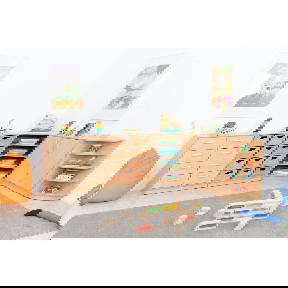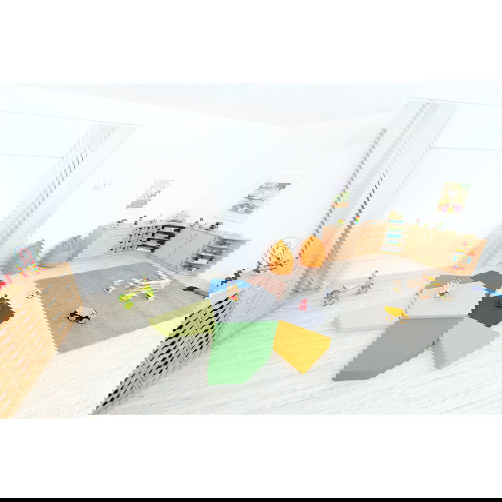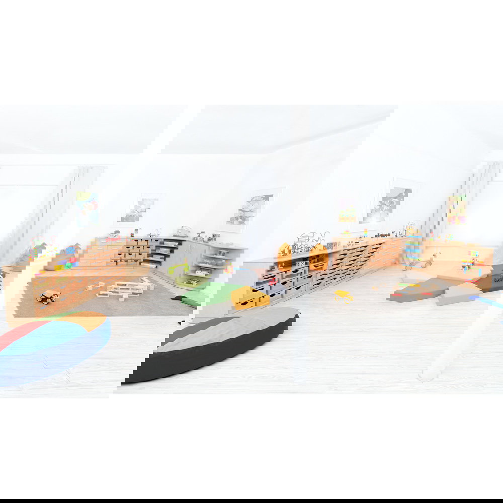 Ein gut durchdachter Raum bildet das verlässliche Fundament für konzentriertes Lernen, kreatives Spielen und einen harmonischen Alltag. Gerade dort, wo täglich viele Menschen zusammenkommen und unzählige Materialien im Einsatz sind, wird Ordnung oft zur Herausforderung. Hier bietet der Möbelsatz Flexi 31 die perfekte Lösung. Er verwandelt große Flächen in strukturierte, einladende Bereiche und schafft sofort eine beruhigende Atmosphäre, in der sich Kinder und Erwachsene gleichermaßen wohlfühlen.