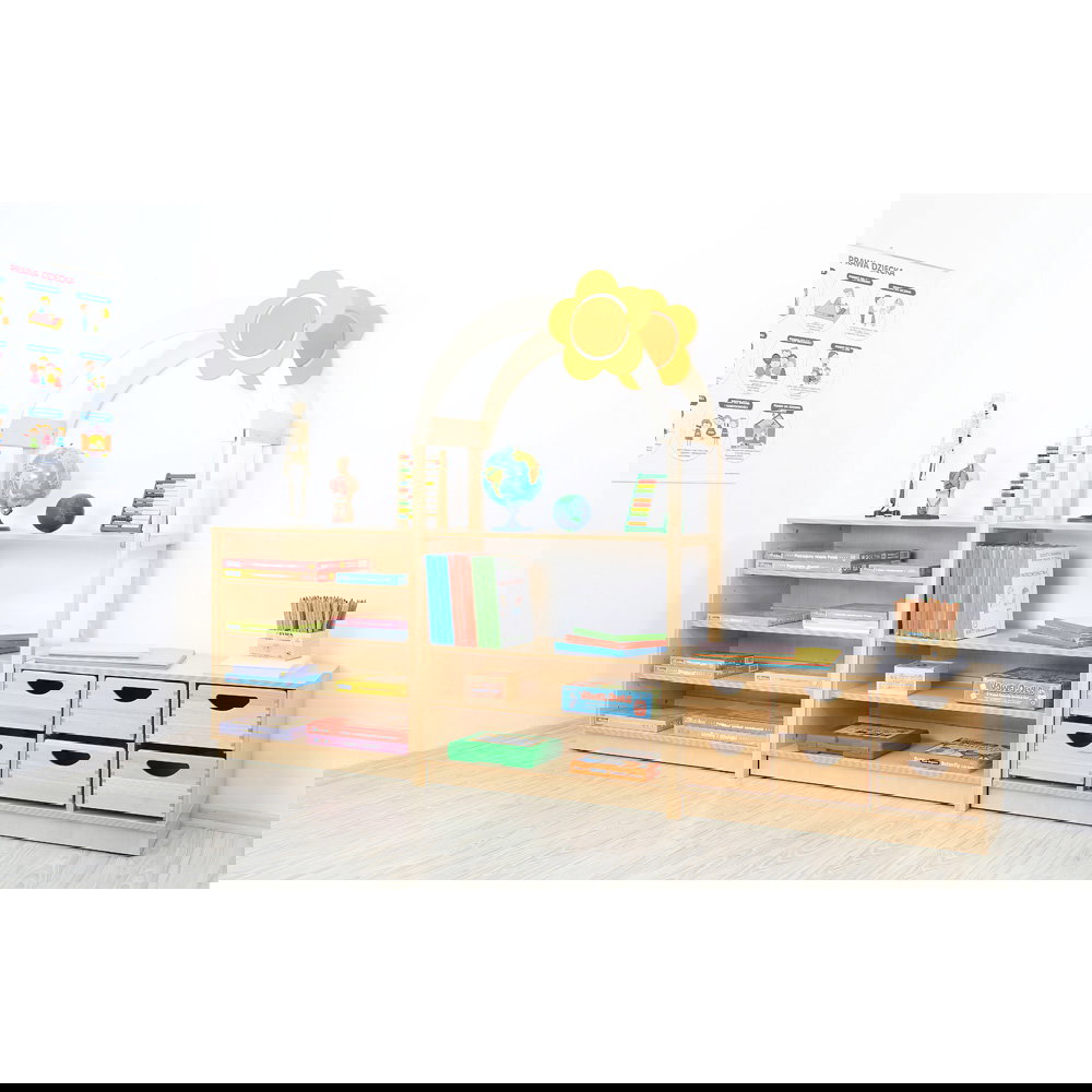 Eine liebevoll gestaltete und gut strukturierte Umgebung bildet das wichtigste Fundament für einen harmonischen Alltag. Wenn viele Spielsachen, Bastelmaterialien und Bücher im Einsatz sind, brauchen Sie Möbel, die sich den dynamischen Anforderungen anpassen. Der Möbelsatz Flexi 44 bringt genau diese intelligente und flexible Lösung in Ihre Einrichtung.