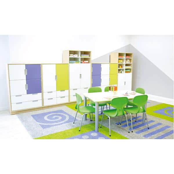 Der Möbelsatz Schrank L+XL – weiß/blau/limone – Quadro 3-180° ist die ideale Aufbewahrungslösung für Kindergärten, Schulen und Zuhause. Mit seinem durchdachten Design und den fröhlichen Farbtönen bringt dieser Möbelsatz Ordnung und Lebendigkeit in jede Lern- und Spielumgebung.
