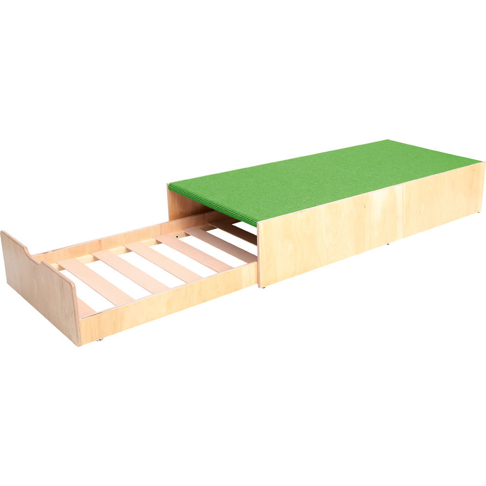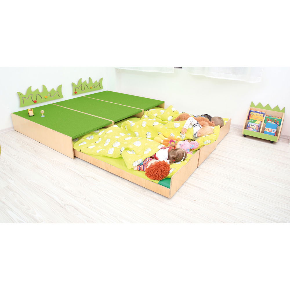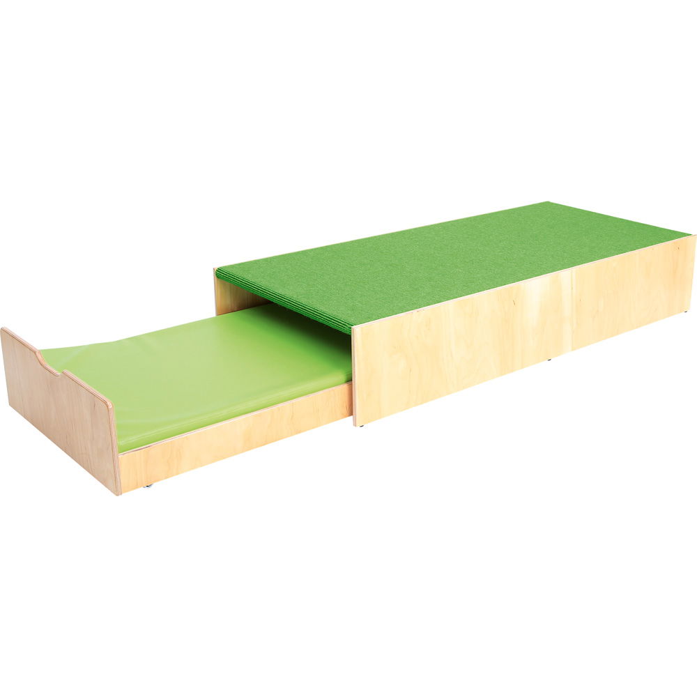 Kindergarten-Podest mit Auszugsbett, Teppichboden grün