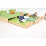 Nutzen Sie den begrenzten Raum in Ihrer Kita optimal mit unserem multifunktionalen Podest mit Auszugsbett – perfekt zum Spielen und Schlafen!
