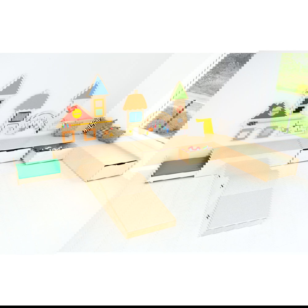 Unser Podest mit Auszugsbett und hochwertigem Linoleum in Beige ist die perfekte Lösung für platzsparende und multifunktionale Nutzung in Kitas. Dieses intelligente Möbelstück bietet tagsüber eine stabile Fläche zum Klettern und Spielen und verwandelt sich nachts in ein komfortables Bett. Das integrierte Auszugsbett lässt sich zum Schlafen einfach hervorziehen und danach mühelos wieder unter dem Podest verstauen. So bleibt der Raum stets ordentlich und vielseitig nutzbar.
