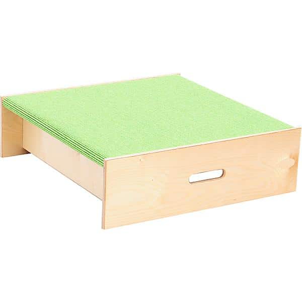Diese Podeste ergänzen sich gegenseitig. Aus den Einzelteilen entsteht eine größere Bühne, ein Podium oder Zuschauerplätze; Podeste mit unterschiedlicher Höhe werden zu einer Treppe. Aus Holz mit rutschfestem Tretford-Teppichboden und Bodenschonern aus Gummi. Zu den Podesten werden Verbindungsklammern geliefert, die das Verbinden zweier Podeste erleichtern und das Verrutschen verhindern.
