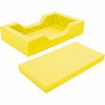 Mit den Maßen von 128 x 75 x 25 cm und einer Wandstärke von 10 cm ist das Bett stabil und dennoch leicht zu handhaben. Die integrierte Matratze misst 108 x 55 x 8 cm, was für eine angenehme und gesunde Schlafposition sorgt. Für optimale Anpassung an Ihre Raumgestaltung ist das Schaumstoffbett in den Farben Gelb, Orange, Hellblau, Limone und Grau erhältlich.