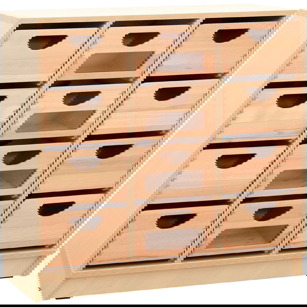 Die praktischen Holzbehälter in Buche bieten viel Stauraum für Lernmaterialien, Spielzeug und andere Utensilien. Mit 4 Behältern mit Sichtfenster behalten Sie immer den Überblick über den Inhalt, während die 8 Behälter ohne Sichtfenster eine ordentliche Aufbewahrung gewährleisten.