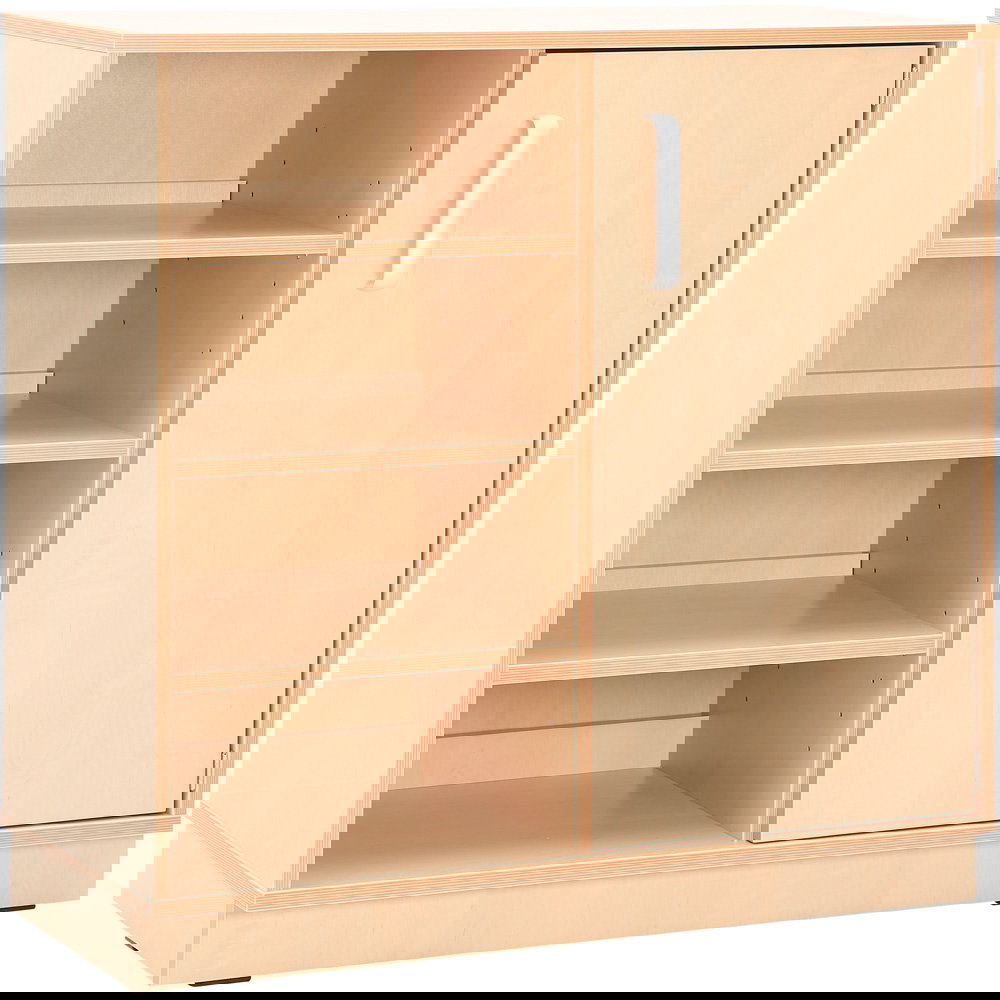 Gefertigt aus robuster, 18 mm starker Spanplatte im freundlichen Birke-Dekor und geschützt durch stoßfeste ABS-Kanten, ist dieser Schrank für den intensiven Dauereinsatz in Kitas, Schulen und Horten bestens geeignet.