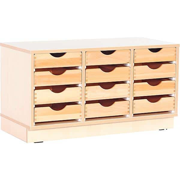 Schrank S mit 2 Trennwänden – für Holzbehälter – auf Sockel – Breite: 89 cm für Kindergärten