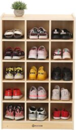 Das Schuhregal bietet Platz für insgesamt 15 Paar Schuhe, die in 15 separaten Schuh-Fächern aufbewahrt werden können. Jedes Fach hat die Maße L 19 x H 16,5 x T 33 cm und bietet ausreichend Platz für die kleinen Schuhe der Kinder. Durch die klare Unterteilung behalten die Kinder den Überblick über ihre eigenen Schuhe und lernen gleichzeitig Ordnung zu halten.
