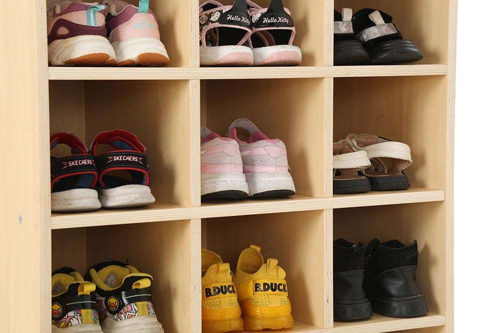 Unser Kindergarten-Schuhregal ist nicht nur funktional, sondern auch kindersicher gestaltet. Die abgerundeten Kanten und die sorgfältige Verarbeitung garantieren eine sichere Nutzung für die Kleinen.