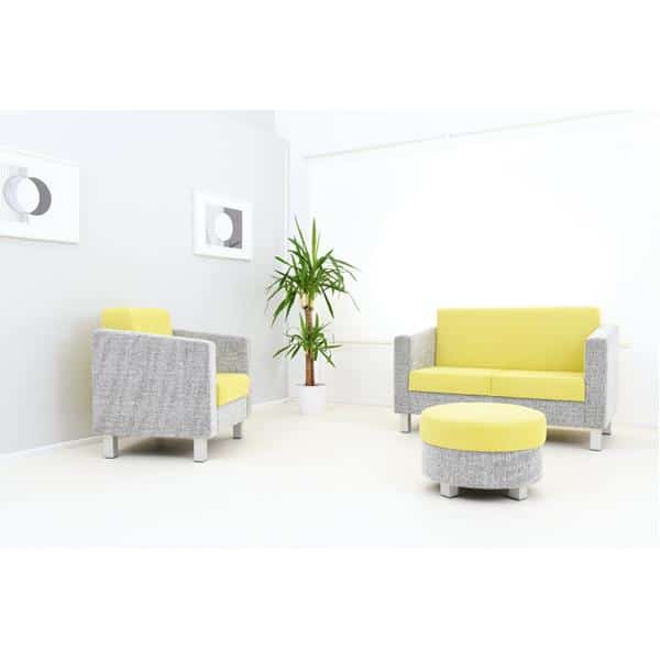 Bequeme, robuste Sitzmöbel. Stabiles Holzgestell mit Schaumstofffüllung, Bezug in origineller Gewebekombination aus Oslo-Velours, Metallbeine alufarben mit Kunststoffgleitern.