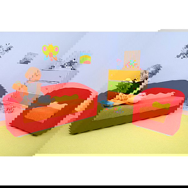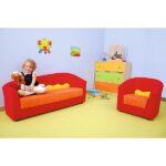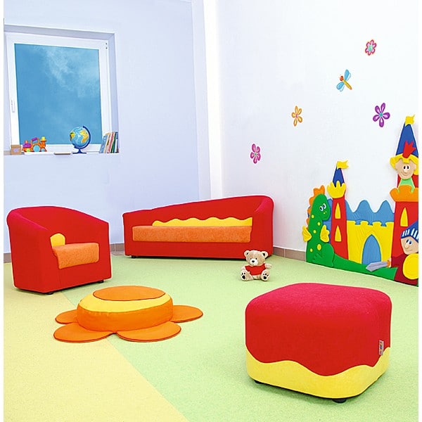 Die Sitze und Sofas See und Sonne haben ein Holzgestell, dies sorgt für Stabilität und ein bequemes Sitzen. Der flauschige Microfaserbezug ist mit Schaumstoff gefüllt. Die elegante Form und trendige Farben beleben jeden Raum. Das große, rot-gelbe Sonnensofa bietet 3 Personen Platz; ideal für Lese-, Erholungs- oder Spielecken.