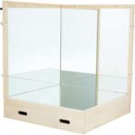 Drei Spiegel, die eine Ecke bilden. Die Kinder können hier unterschiedliche Perspektiven entdecken. Das eigene Spiegelbild in mehrfacher Ausführung zu sehen, ist faszinierend – besonders wenn man dabei eine Grimasse schneidet. Die Spiegelecke muss an der Wand montiert werden.