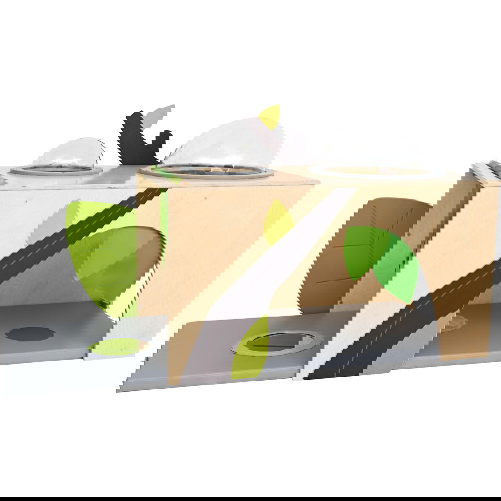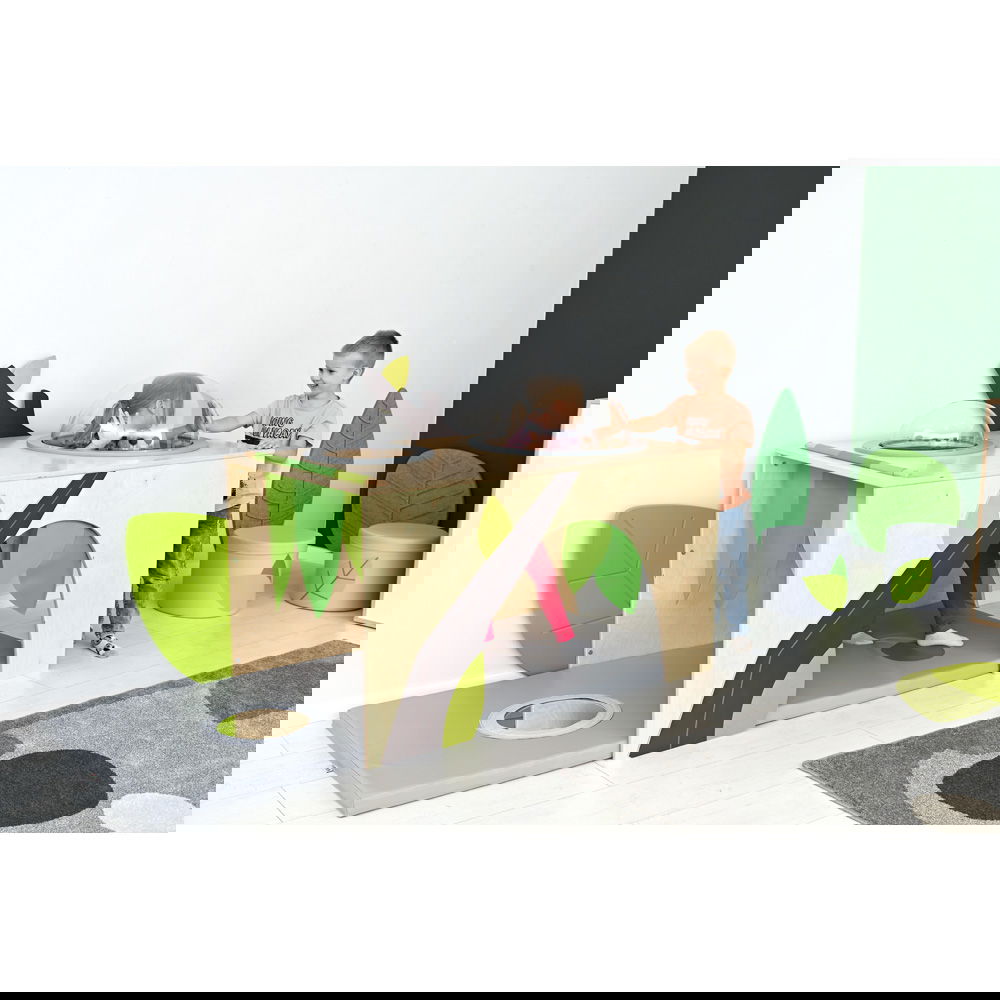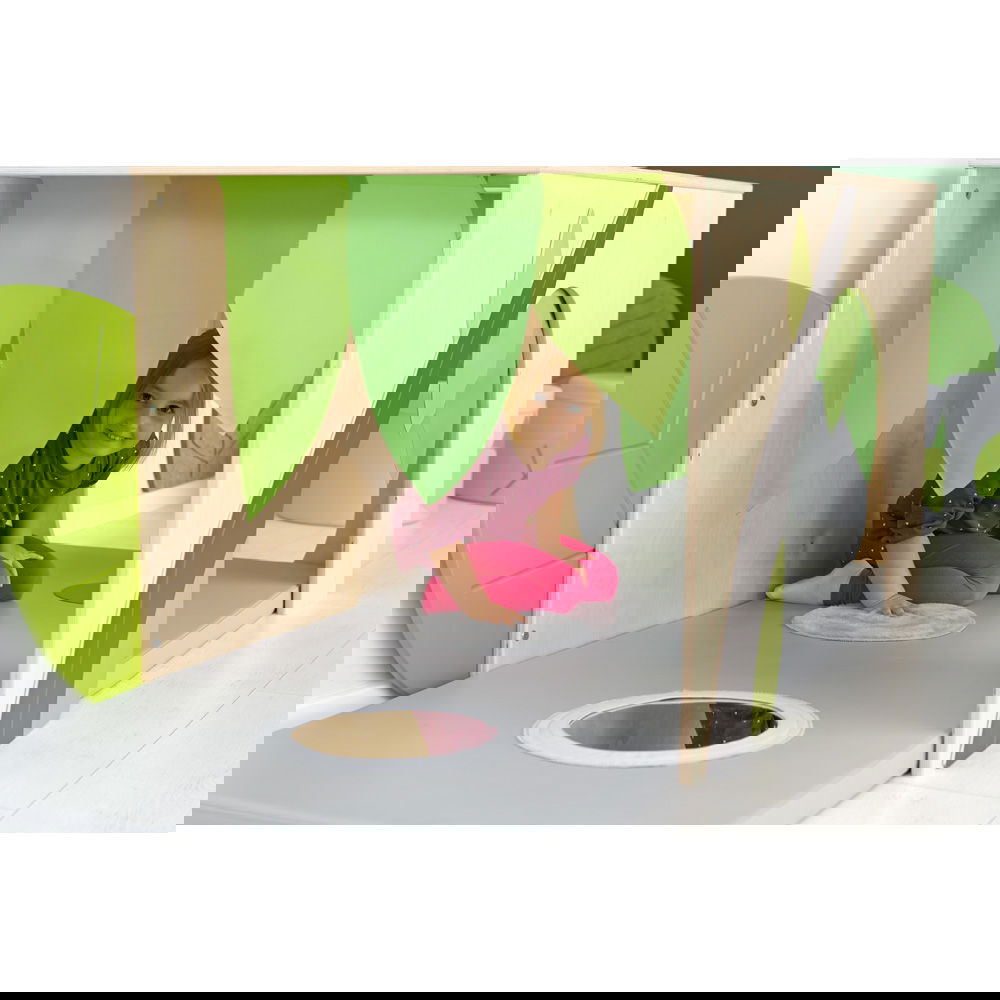 Kinder lieben es, sich ihre eigenen kleinen Welten zu schaffen, sich zu verstecken und in Ruhe zu spielen. Der Flora Unterschlupf ist mehr als nur eine Spielecke – er ist ein zauberhafter Rückzugsort, der speziell dafür konzipiert wurde, die Sinne von Kleinkindern anzuregen und ihre Entwicklung auf spielerische Weise zu fördern. In dieser liebevoll gestalteten Oase können Kinder krabbeln, entdecken und sich vom aufregenden Kita-Alltag erholen. Mit seinem Blätter-Vorhang, den spannenden sensorischen Elementen und den lustigen Bullaugen lädt der Unterschlupf zu fantasievollen Abenteuern ein und wird schnell zum Lieblingsplatz in jedem Gruppenraum.