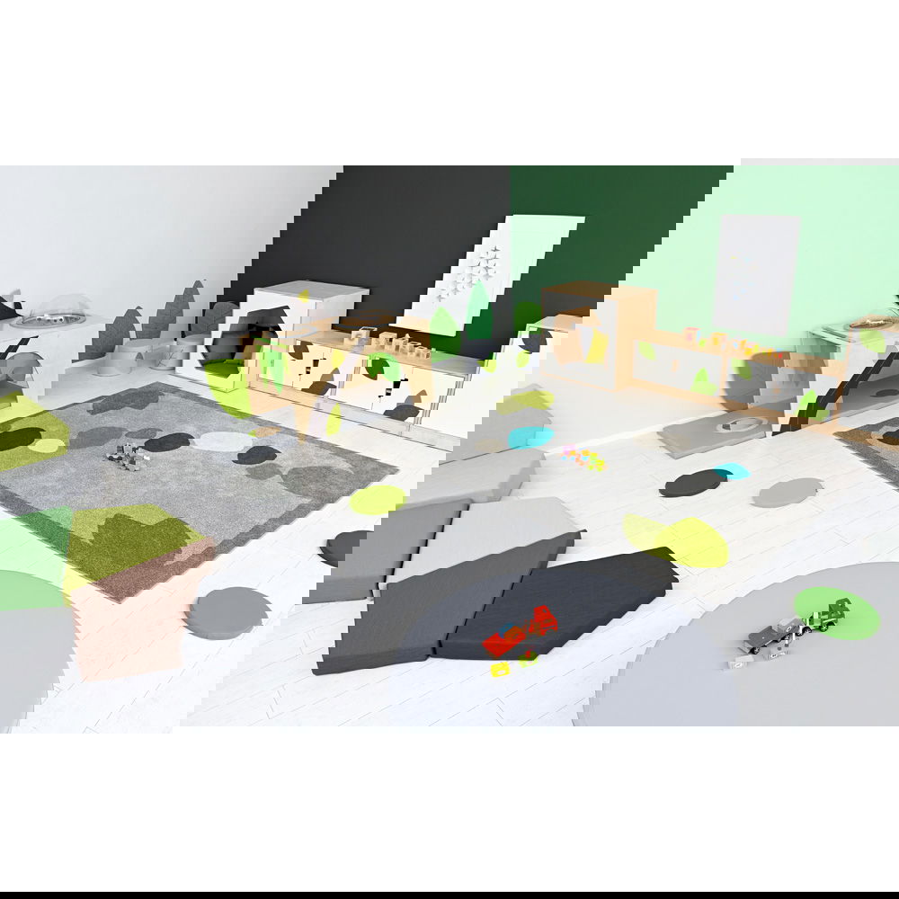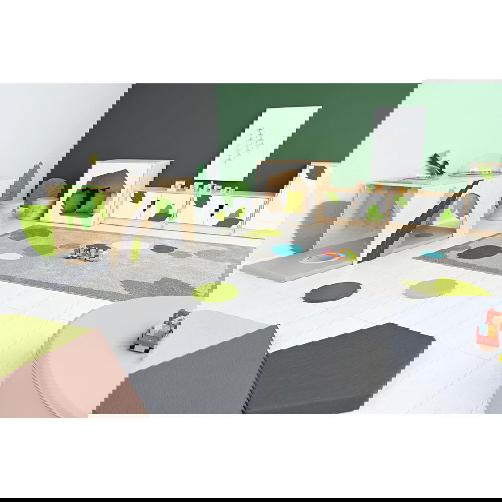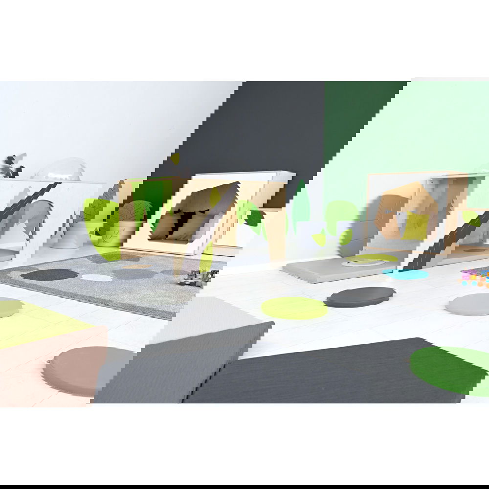 Die zum Set gehörende Spielmatte, die links angebracht wird, erweitert die Spielfläche und bietet eine weiche, sichere Unterlage für erste Erkundungen. Ob frei im Raum aufgestellt oder an einer Wand platziert – der Flora Unterschlupf schafft eine geschützte und inspirierende Umgebung, die Geborgenheit vermittelt und gleichzeitig die Neugier weckt.