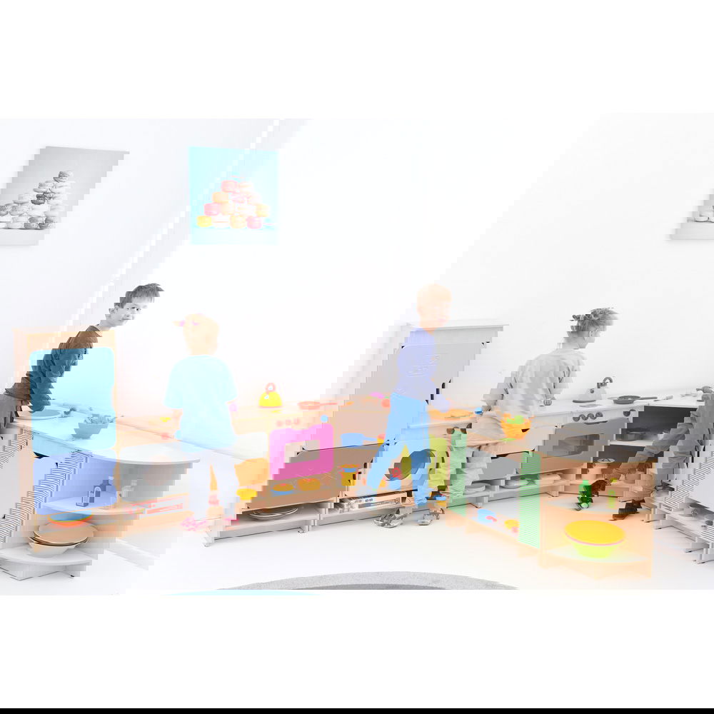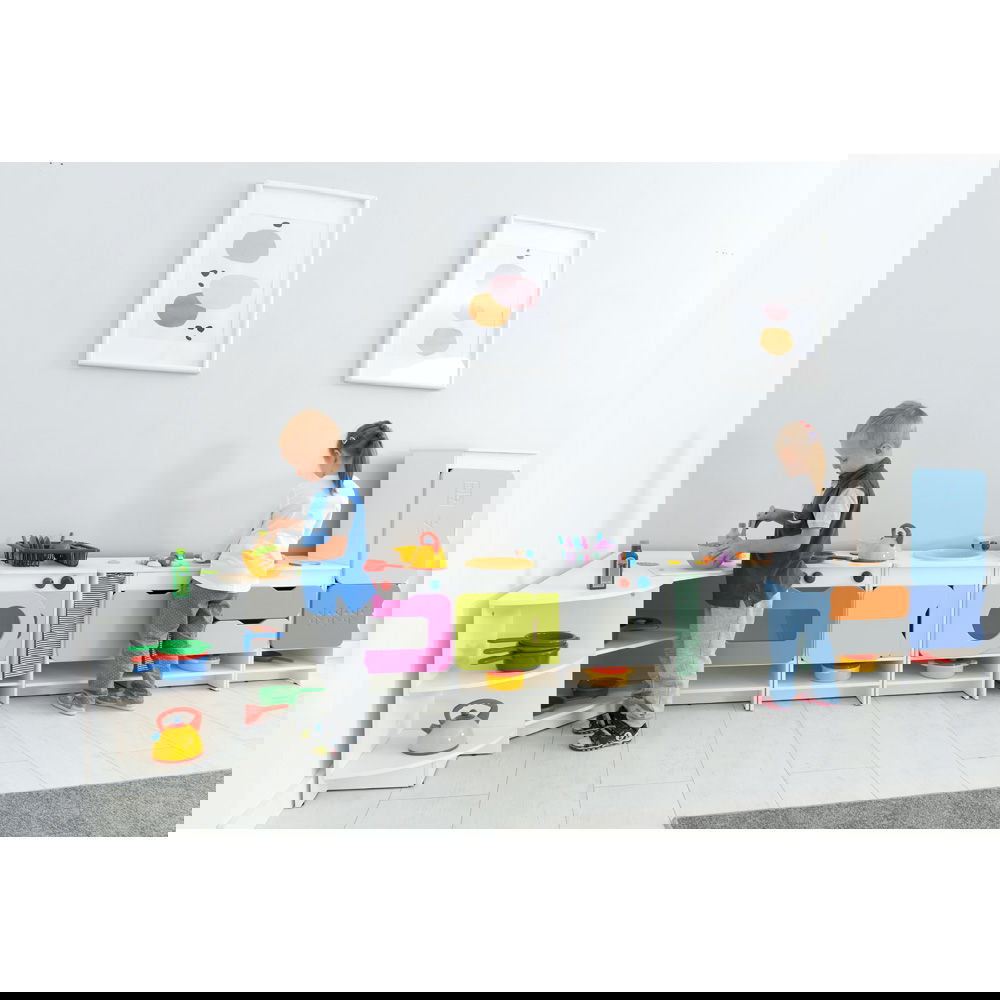 Wenn aus kleinen Kindern große Küchenchefs werden, dann ist die Spielecke Küche Quadro – Set mit Kühlschrank im Spiel. Dieses umfangreiche Küchen-Ensemble ist die ultimative Ausstattung für Rollenspiele in Kindertagesstätten, Kindergärten oder Wartebereichen. Mit insgesamt acht Modulen bietet dieses Set alles, was eine professionelle Haushaltführung im Kleinformat benötigt – vom Kühlen der „frischen“ Zutaten bis zum Abwasch nach dem Festmahl.