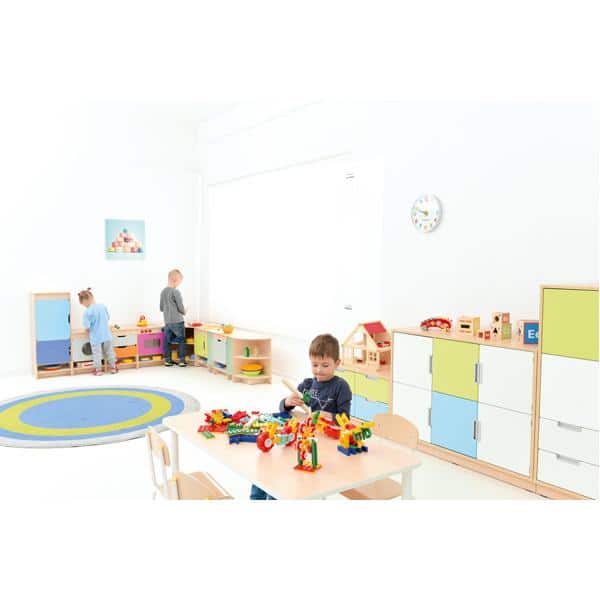Spielecke Küche Quadro – Ahorn – Set mit Kühlschrank für Kindergärten