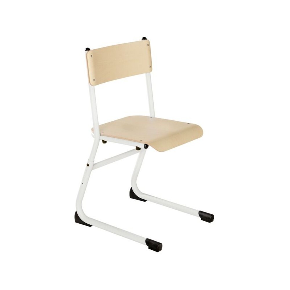 Neben der Ergonomie besticht dieser Stuhl durch seine außergewöhnliche Langlebigkeit. Das Rohrgestell besteht aus unverformbarem Stahl und ist mit einer äußerst robusten, kratzfesten Epoxidfarbe beschichtet. Diese widerstandsfähige Konstruktion hält enormen Belastungen stand und trägt mühelos sogar das Gewicht eines Erwachsenen. Die beschichtete Sperrholzoberfläche der Sitzfläche und Lehne in der ansprechenden Farbe Natur ist nicht nur ein optischer Ruhepol, sondern auch extrem pflegeleicht. Ein feuchter Schwamm genügt, um die Flächen hygienisch sauber zu halten.