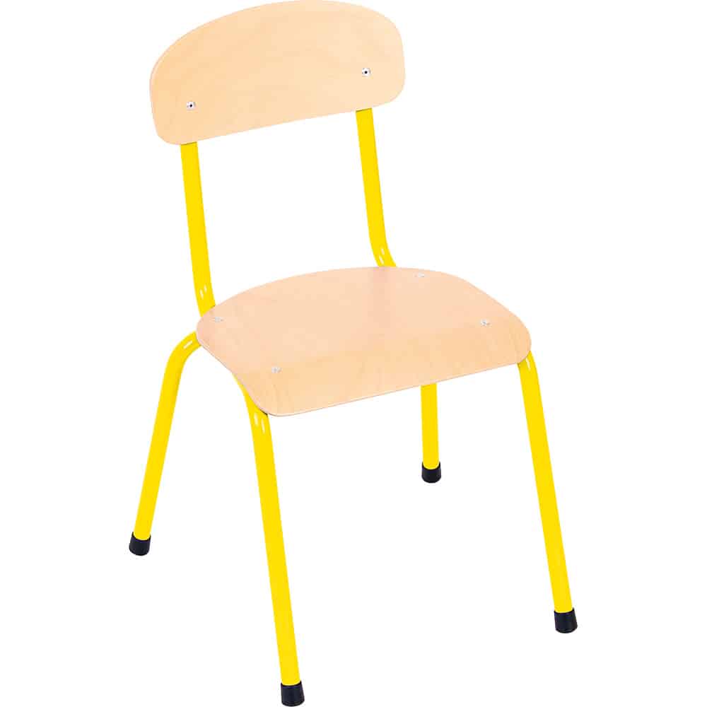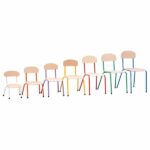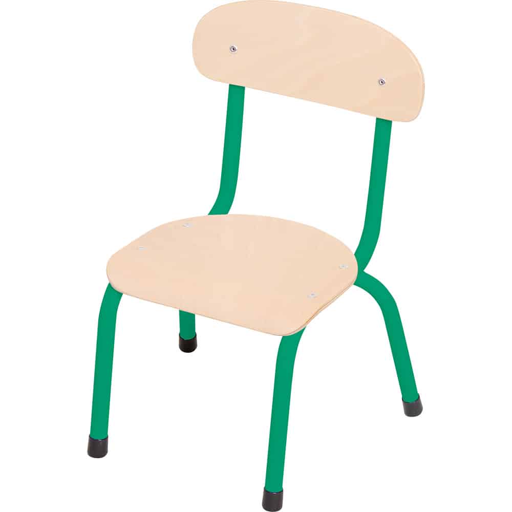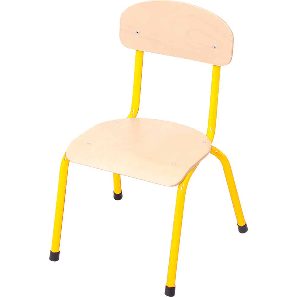 Der Kindergarten-Stuhl Bambino vereint Stabilität, Komfort und Langlebigkeit und ist damit die ideale Wahl für jede Kita und jeden Kindergarten. Mit einem robusten Metallgestell aus Rundrohr (Ø 18 mm) bieten diese Stühle Sicherheit und zuverlässige Standfestigkeit. Die profilierte Sitzfläche aus 6 mm starkem Buchensperrholz mindert den Druck auf die Kniekehle, während die ergonomisch geformte Rückenlehne die optimale Körperhaltung der Kinder unterstützt.