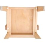 Das Gestell dieses hochwertigen Stuhls ist aus Buche-Massivholz (Querschnitt 20 x 50 mm) gefertigt und verzapft. Ein umlaufender Holzrahmen von 20 mm Stärke unter der Sitzfläche ist mit den Stuhlbeinen verschraubt. Die solide Holzkonstruktion garantiert höchste Stabilität. Die profilierte Sitzfläche (lackiertes Sperrholz, Stärke 6 mm) mindert beim Sitzen den Druck auf die Kniekehle und die Rückenlehne aus verstärktem Sperrholz (Stärke 15 mm) unterstützt die richtige Körperhaltung. Armlehnen gewährleisten Sicherheit. Der Filzkratzschutz an den Stuhlbeinen verhindert Schäden am Fußboden. Die Produktion erfolgt gemäß DIN EN 1729. Der Stuhl ist in Größen 0-2 erhältlich und somit für Kinder im Alter von 1 bis 4 Jahren geeignet. Sie sind in den Sitzhöhen 21 cm, 26 cm, 31 cm und 35 cm erhältlich.