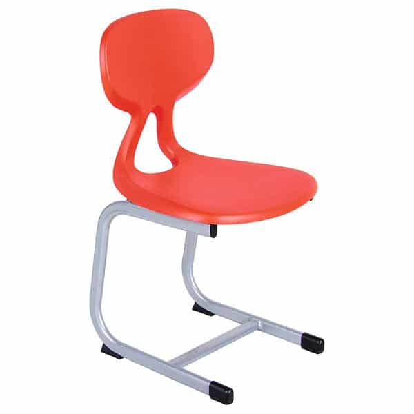 Modernes Design, attraktive Farben, Stabilität und Ergonomie in einem. Gestell aus Ovalmetallrohr (Durchmesser: 38 x 20 mm), alufarben. Frei federnde Rückenlehne aus Kunststoff passt sich dem Rücken des Kindes an. Durch die Aussparung im Rückenteil lässt sich der Stuhl bequem tragen. Rutschsichere, kratzresistente, schmutz- und wasserabweisende Oberfläche. Stühle sind leicht an der Tischkante einzuhängen. Stuhlbeine bilden im unteren Teil ein H, dies sorgt für hohe Stabilität. Stuhlbeine sind mit fußbodenschonenden Kunststoffgleitern ausgestattet. Sitzfläche und Rückenlehne dürfen nicht mit alkoholhaltigen Mitteln behandelt werden, sonst können sie verfärben. Schwer entflammbar nach BS 5852:1982 Part 2.